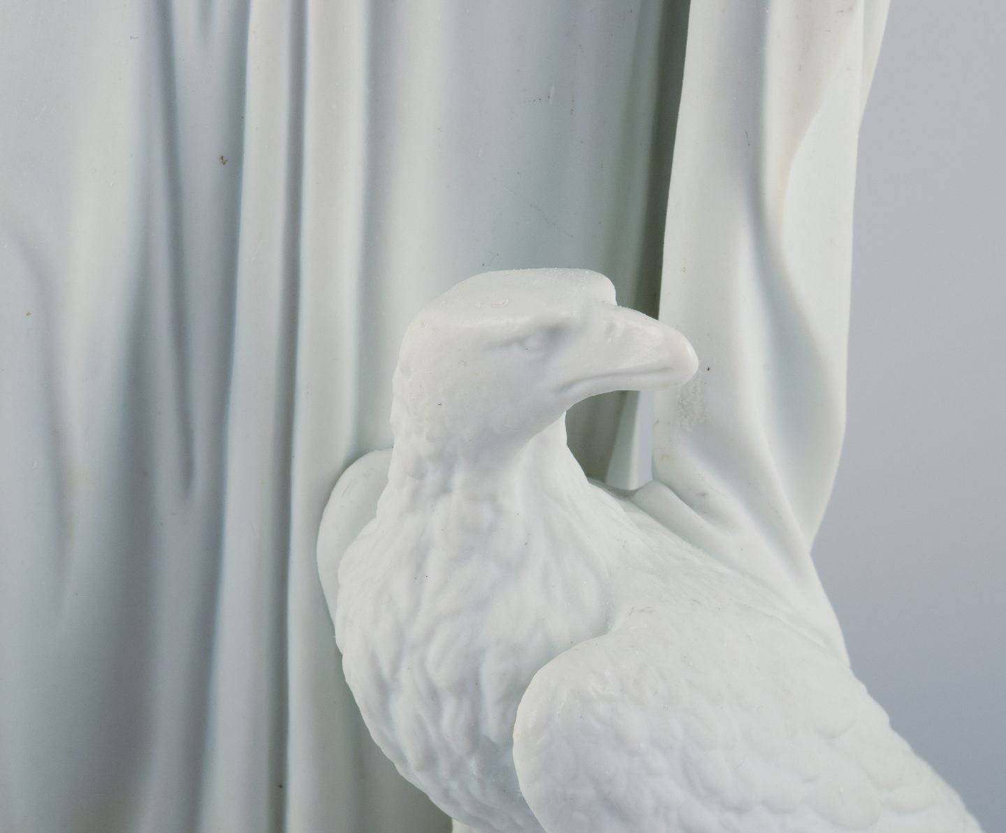 Bing & Grondahl, Thorvaldsen sculpture in biscuit in the shape of Apostle Johannes. Originally made by Pietro Marchetti. With the eagle and the Book of Revelation, 1870/80s.