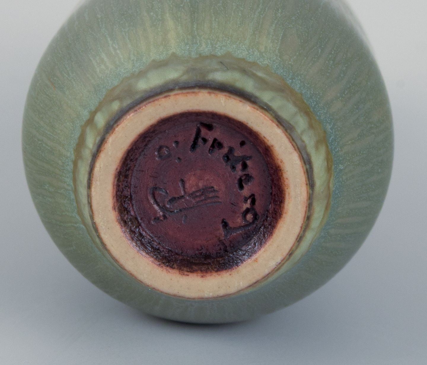 Berndt Friberg for Gustavsberg, Studiohand miniature vase with glaze in shades of green.