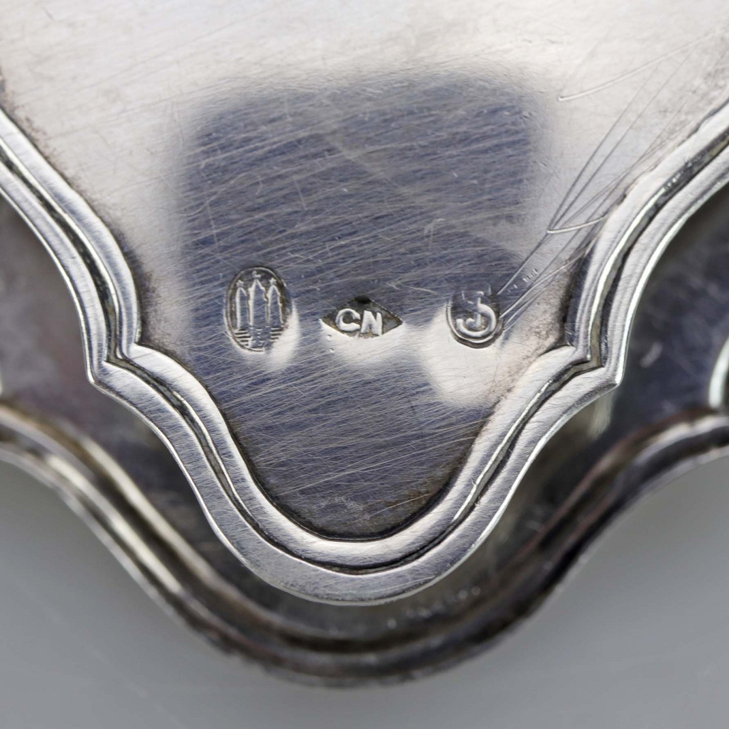 Holder til salatbestik i sølv. Stemplet CN tretårnet sølv