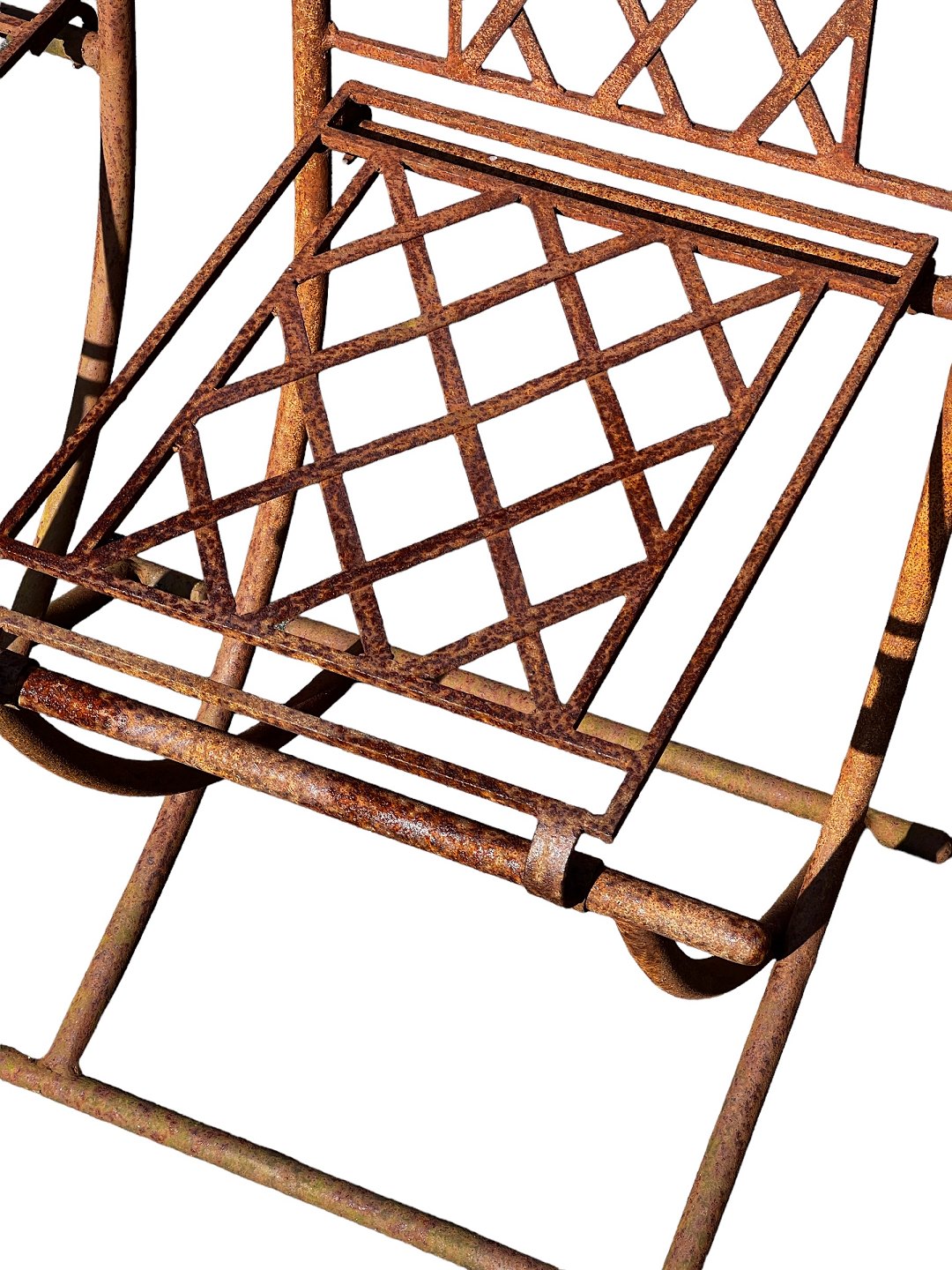 Et sæt af to franske jern stole fra omkring 1950'erne med fin udsmykning.
