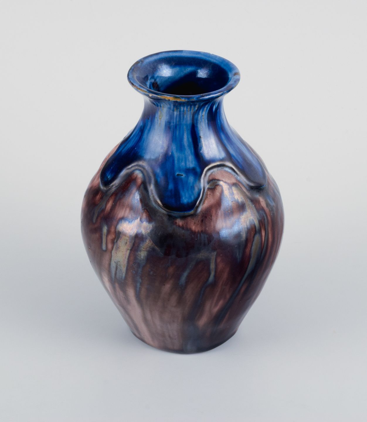 I flot stand, den store vase med små ubetydelige afslag i toppen, naturlige krakeleringer.