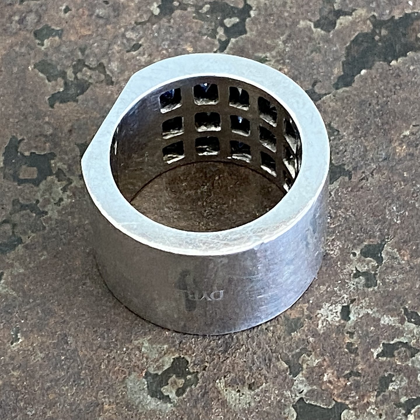 Stor bred ring af massivt sterlingsølv med sorte faceslebne cubic zirconia.