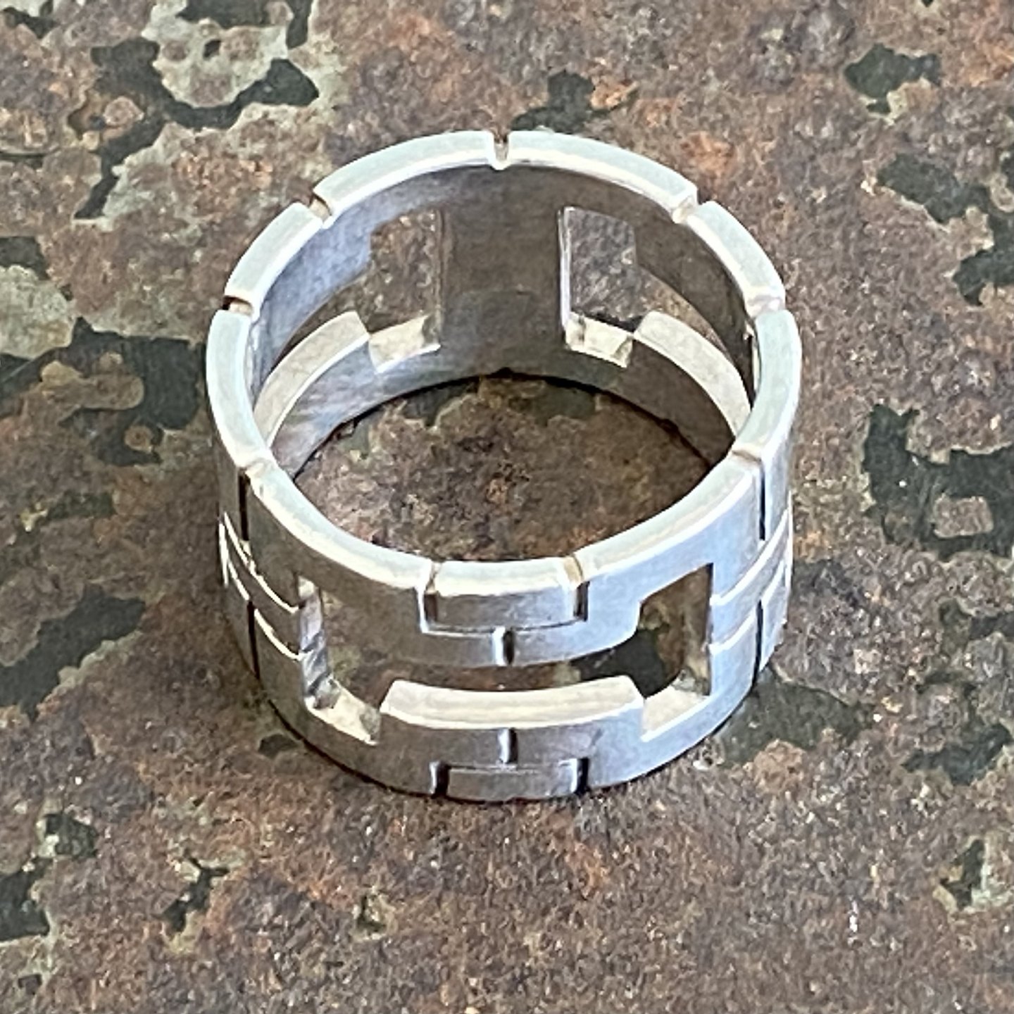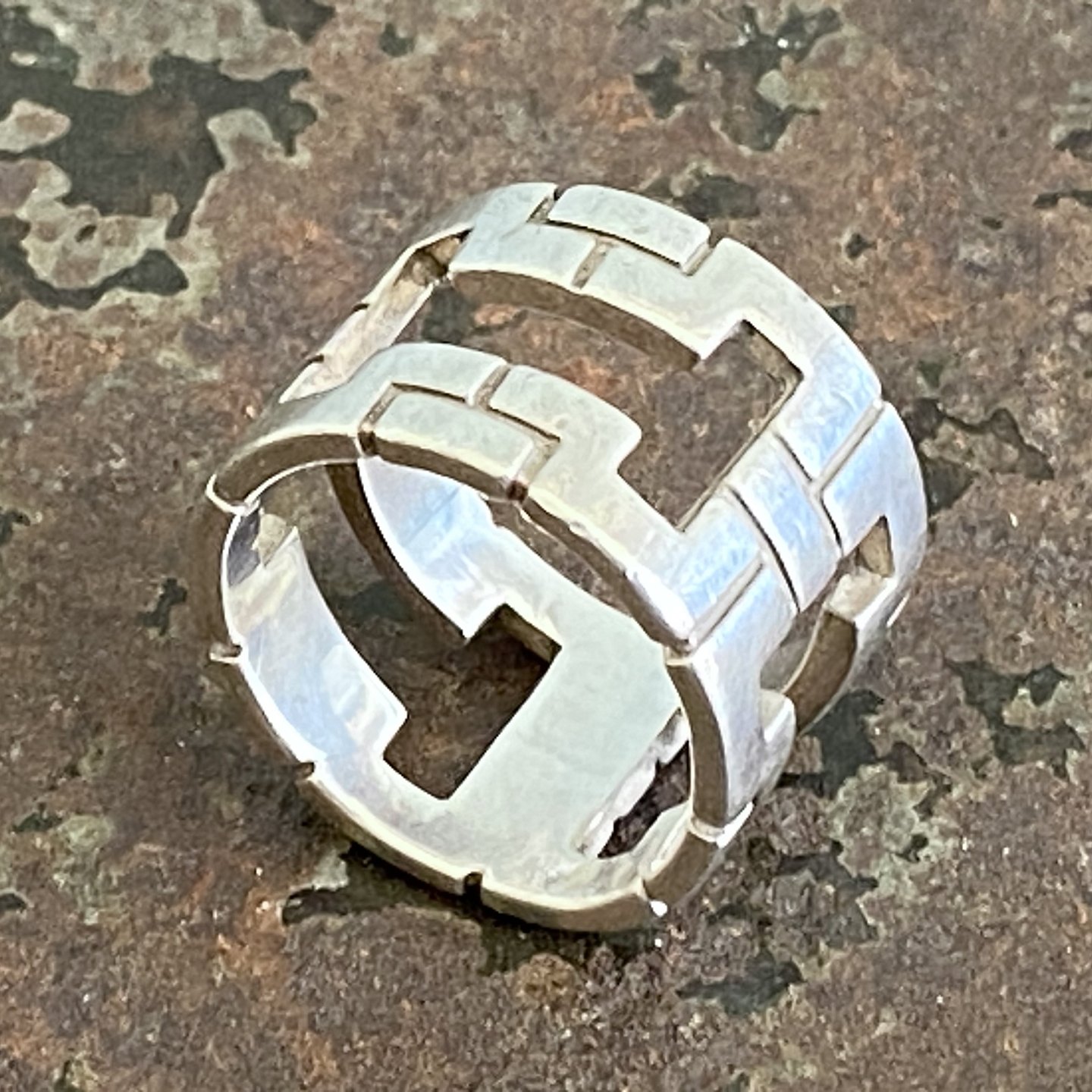 Bred skulpturel ring af sterling sølv.