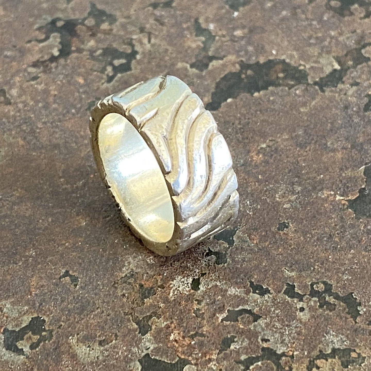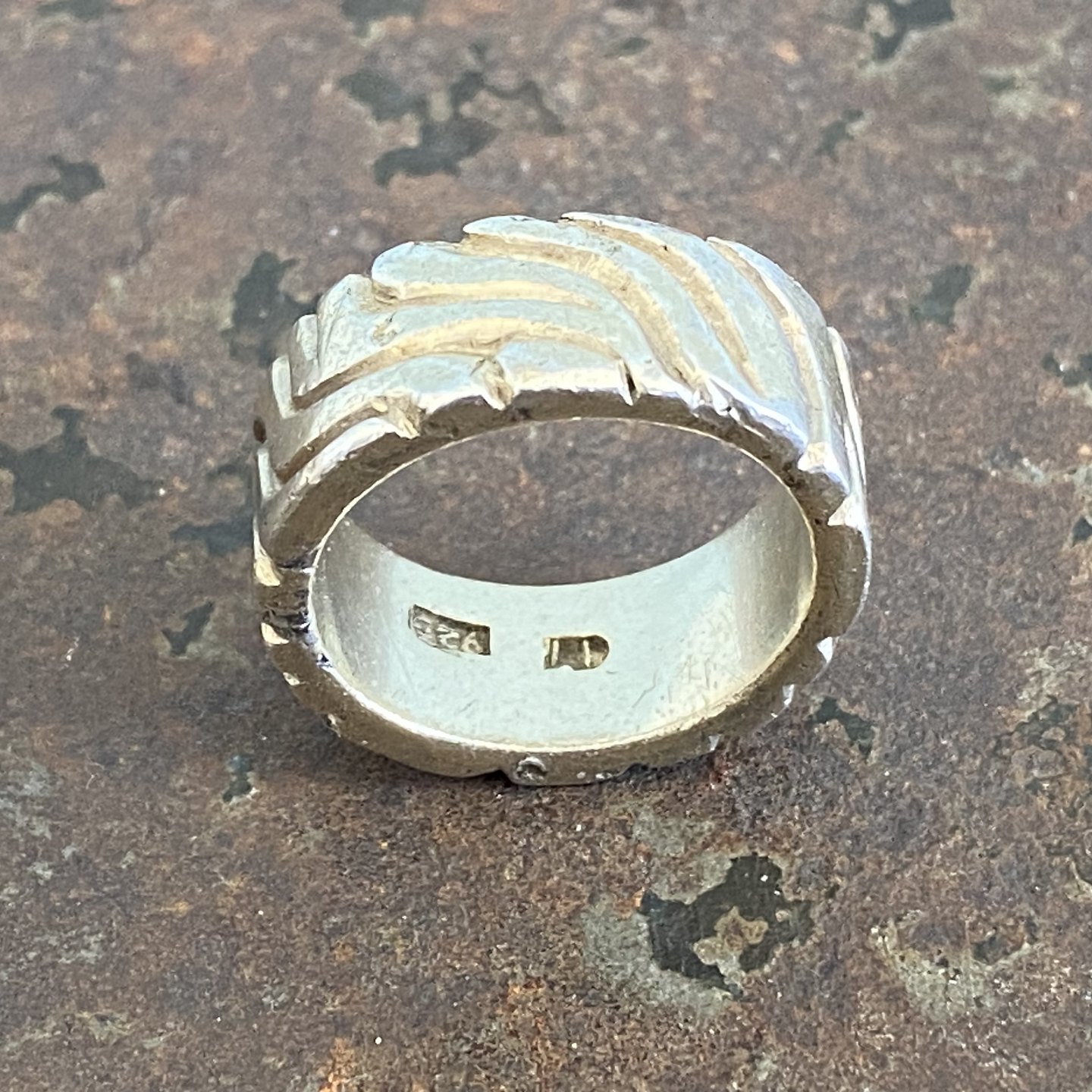 Wide sculptural ring of sterling silver. Ø 22 mm. internal dimensions 16 mm. Stamped 925s. weight 15g