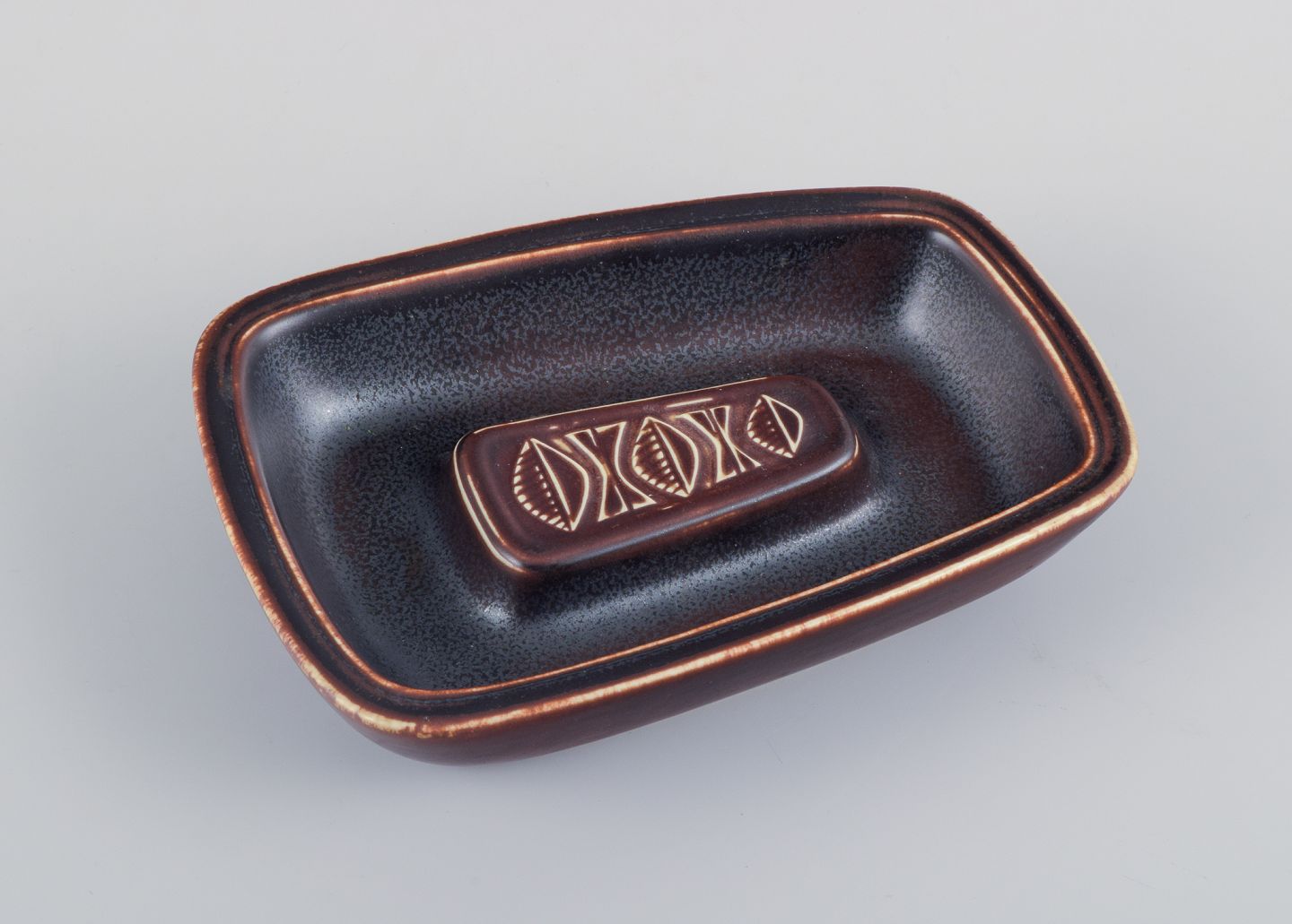 Gunnar Nylund for Rörstrand, keramikskål med glasur i brune nuancer.