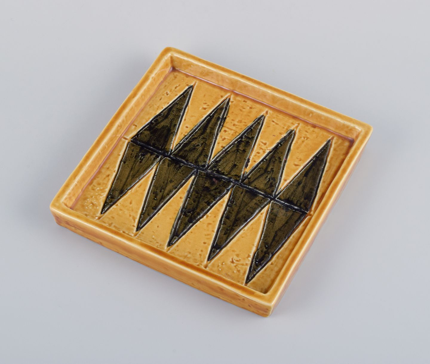 Rörstrand, kvadratisk keramikfad, Harlekin serien.