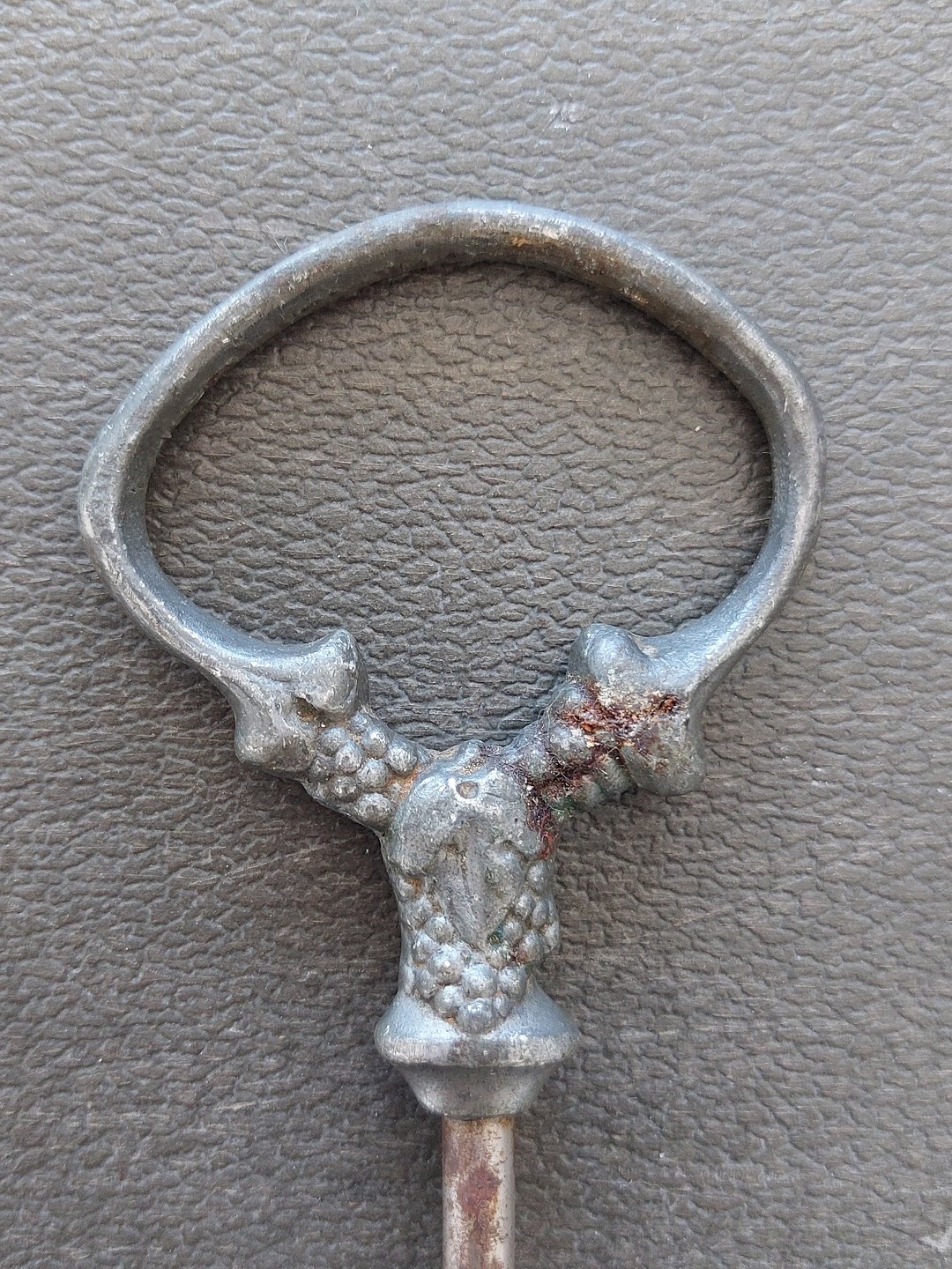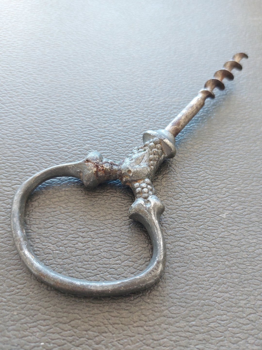 Proptrækker i tin fra omkring 1920. Dekoreret med vindruer. I god stand. L. 14 cm