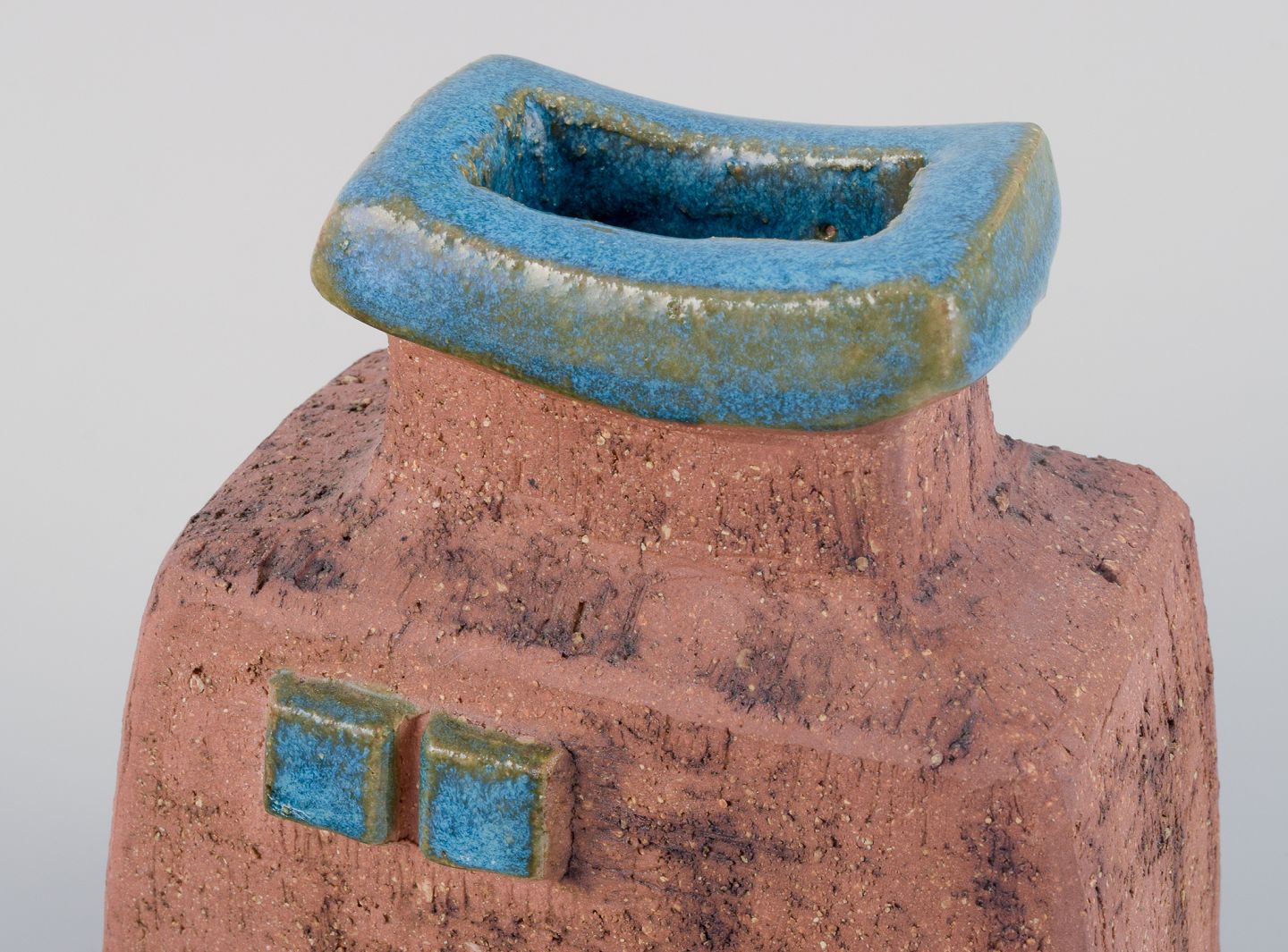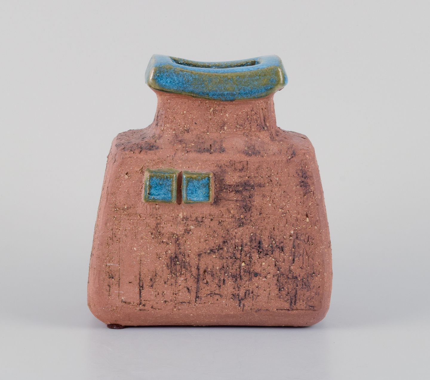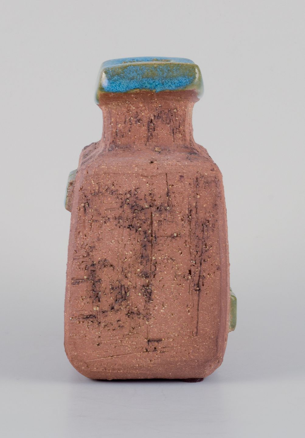 Curt Addin, eget værksted, svensk keramiker. Unika keramikvase i modernistisk og stilrent design. Chamotte-ler, glasur i blågrønne nuancer.
