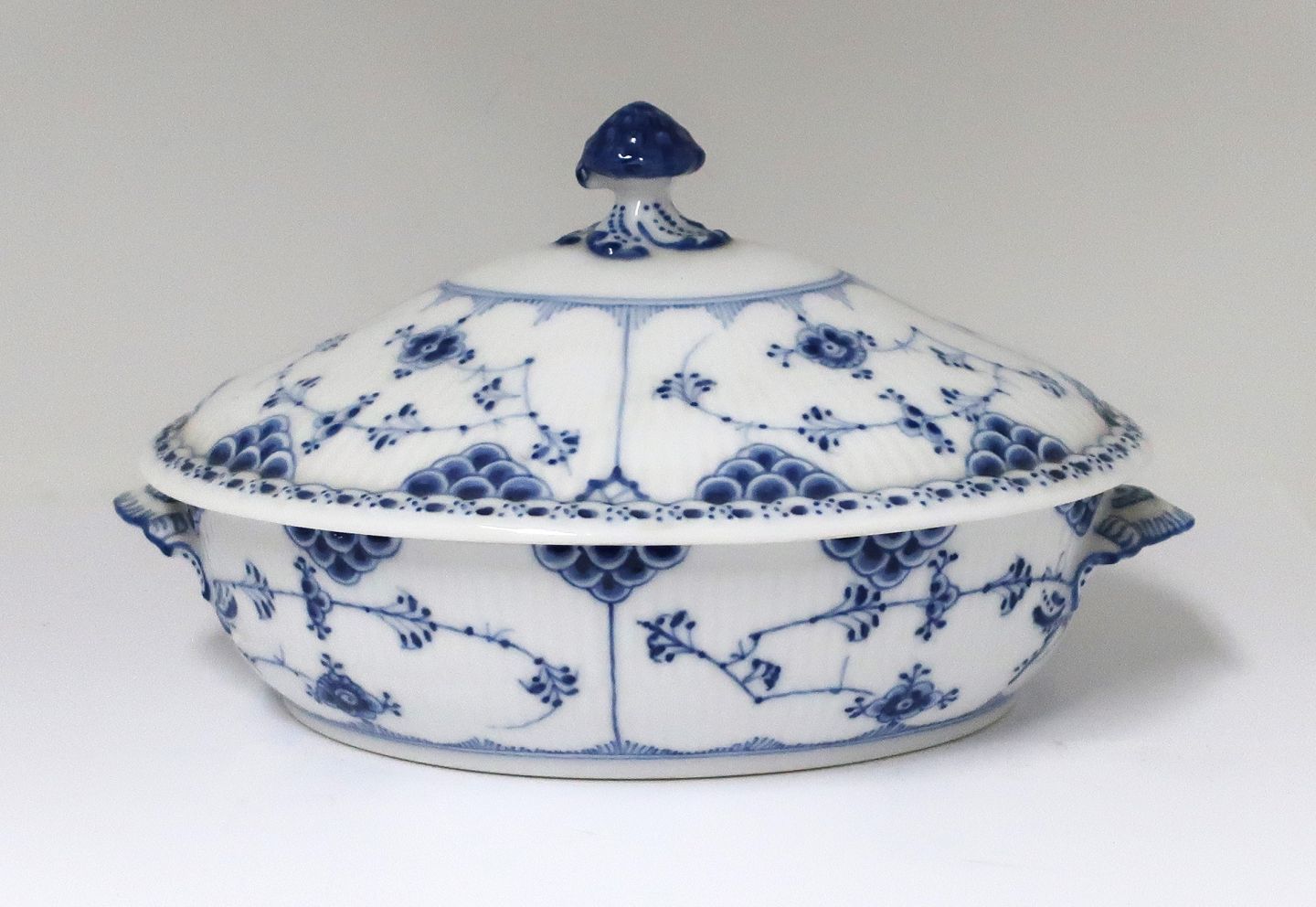 Royal Copenhagen. Musselmalet, halvblonde. Lågfad. Model 622. Længde 28 cm. Bredde 17,5 cm. (2 sortering)