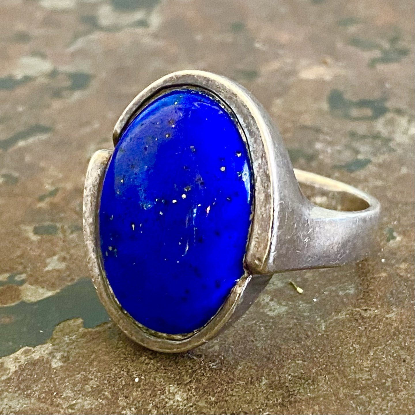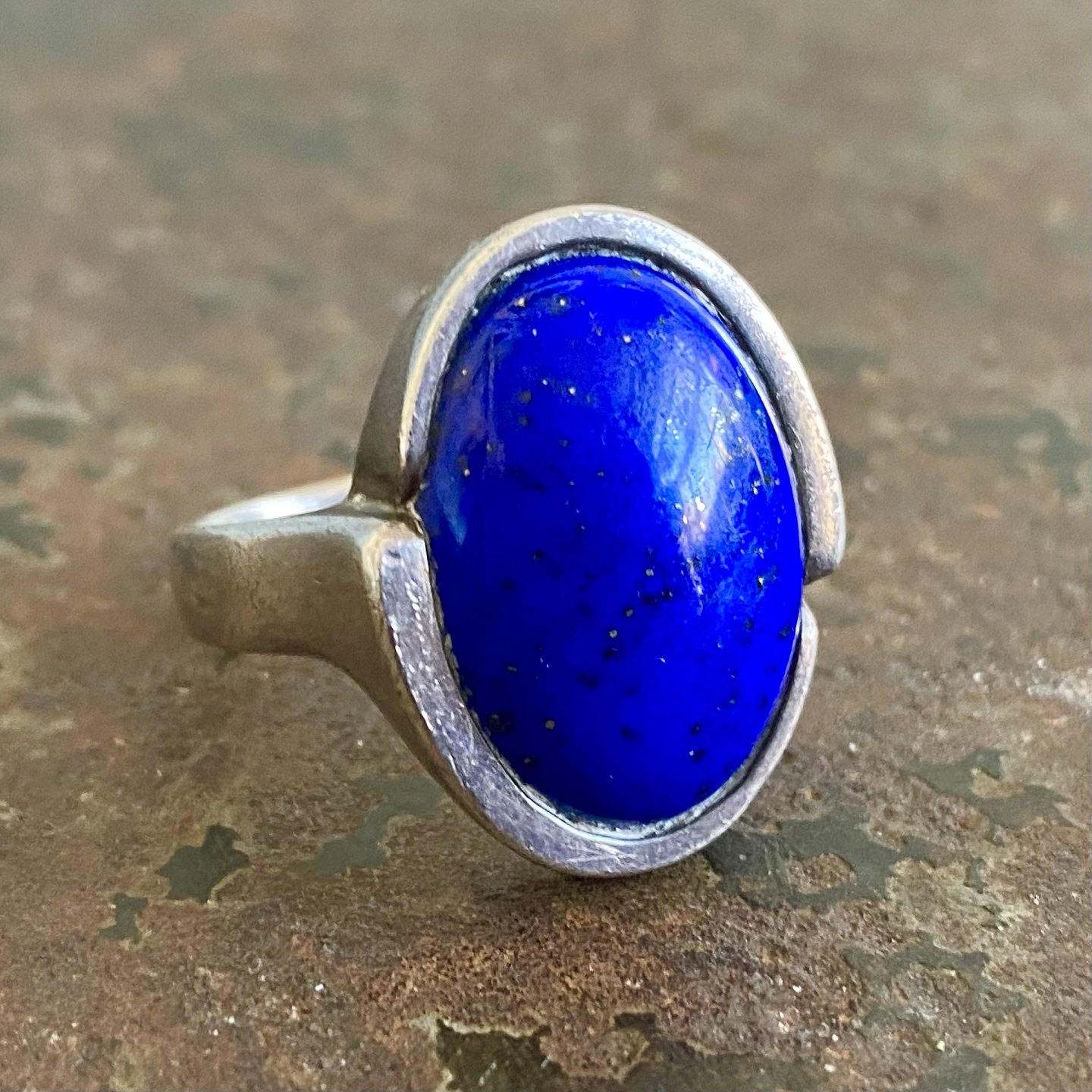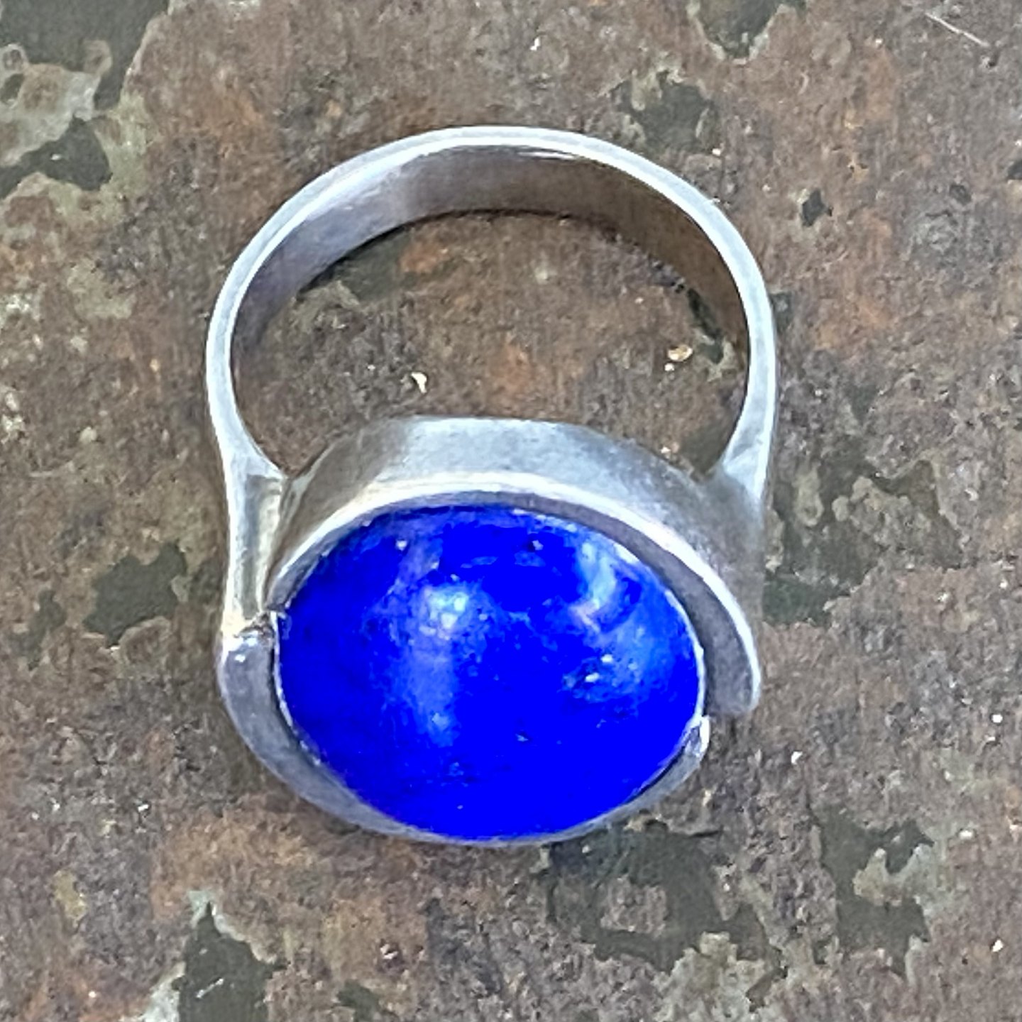 Skulpturel ring af sterling sølv med blå sten. .