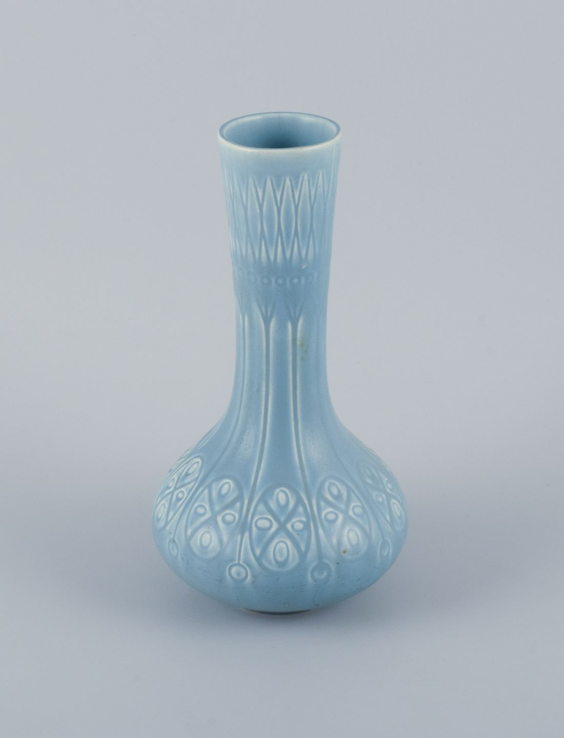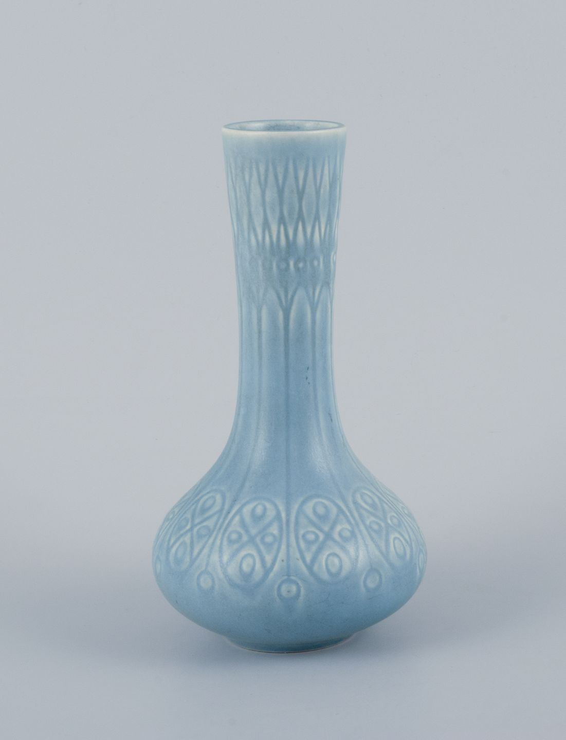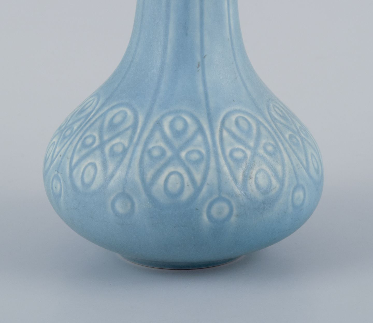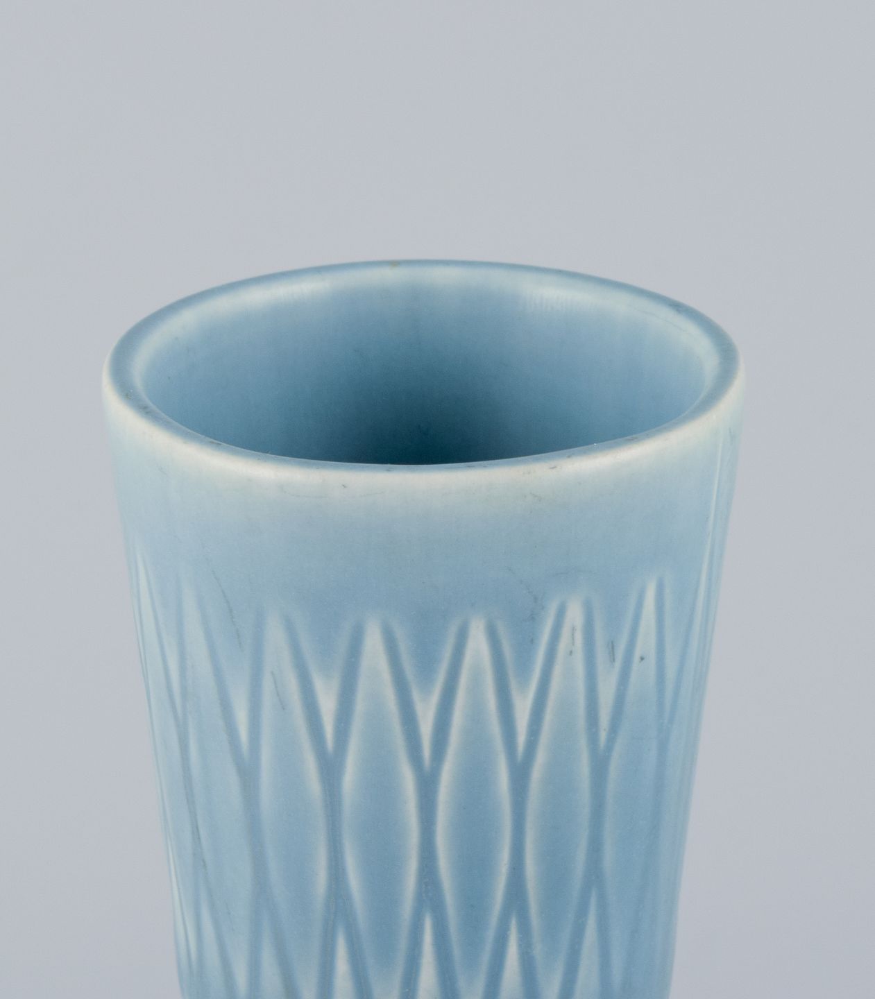 Upsala-Ekeby/Gefle, Sverige. To ”Kairo” keramikvaser i lyseblå glasur.