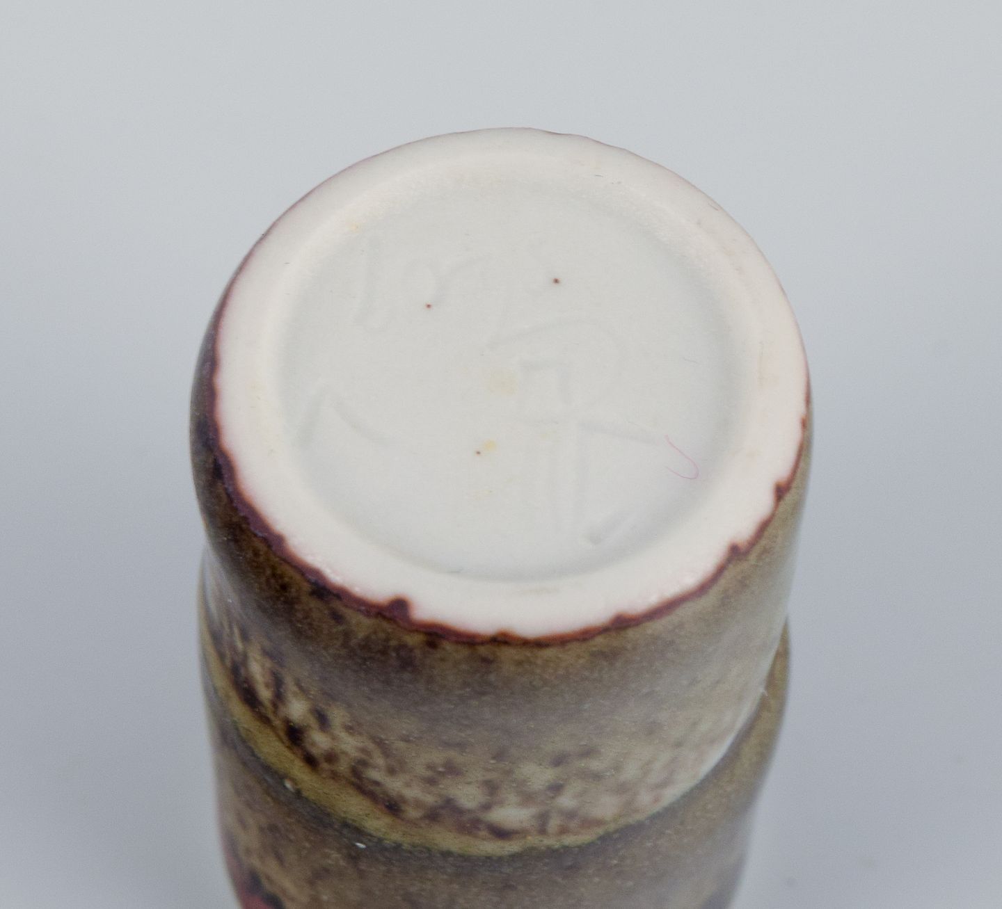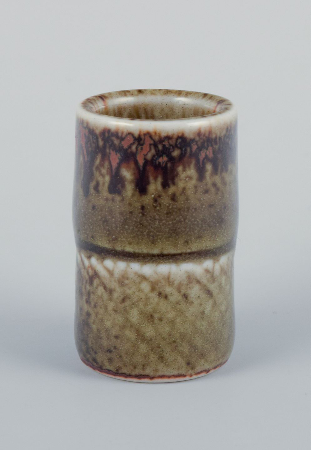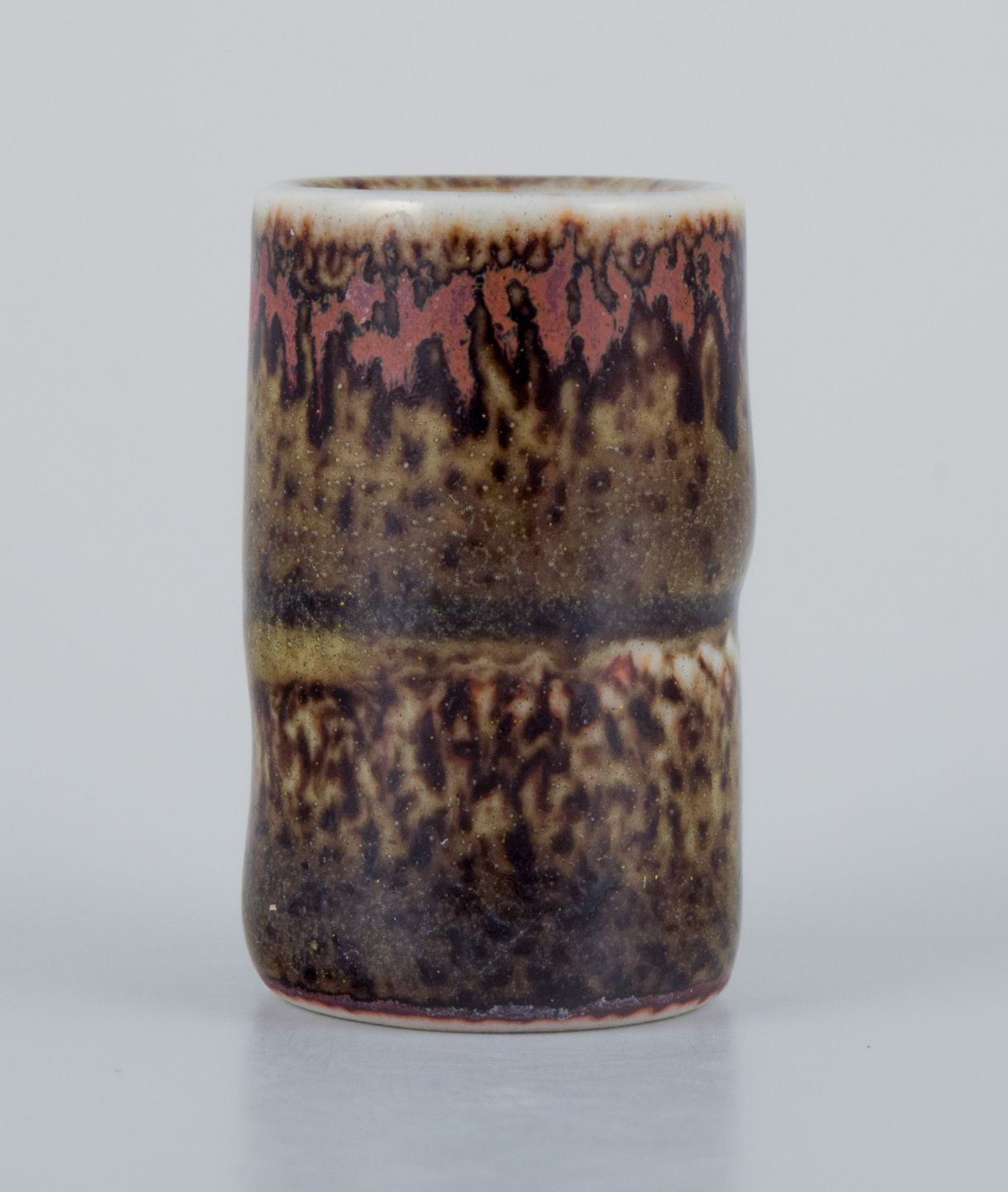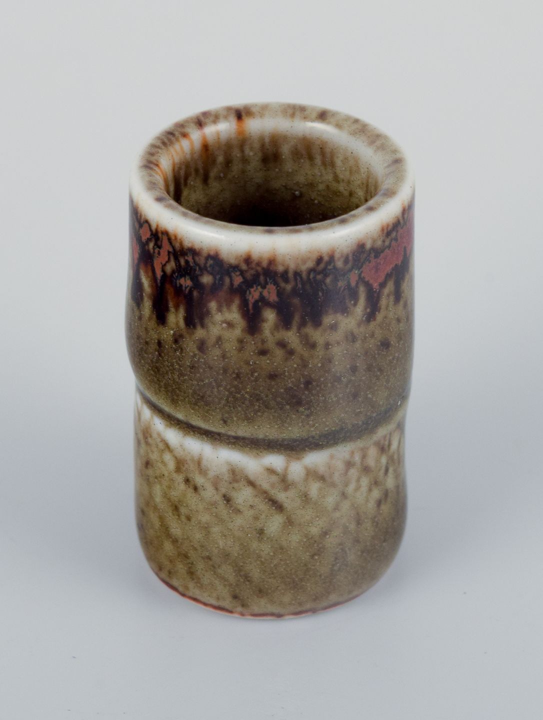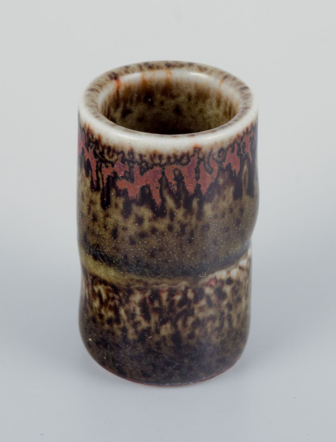 Stig Lindberg (1916-1982), Gustavsberg - Studio Hand, miniature vase med glasur i grønbrune toner.