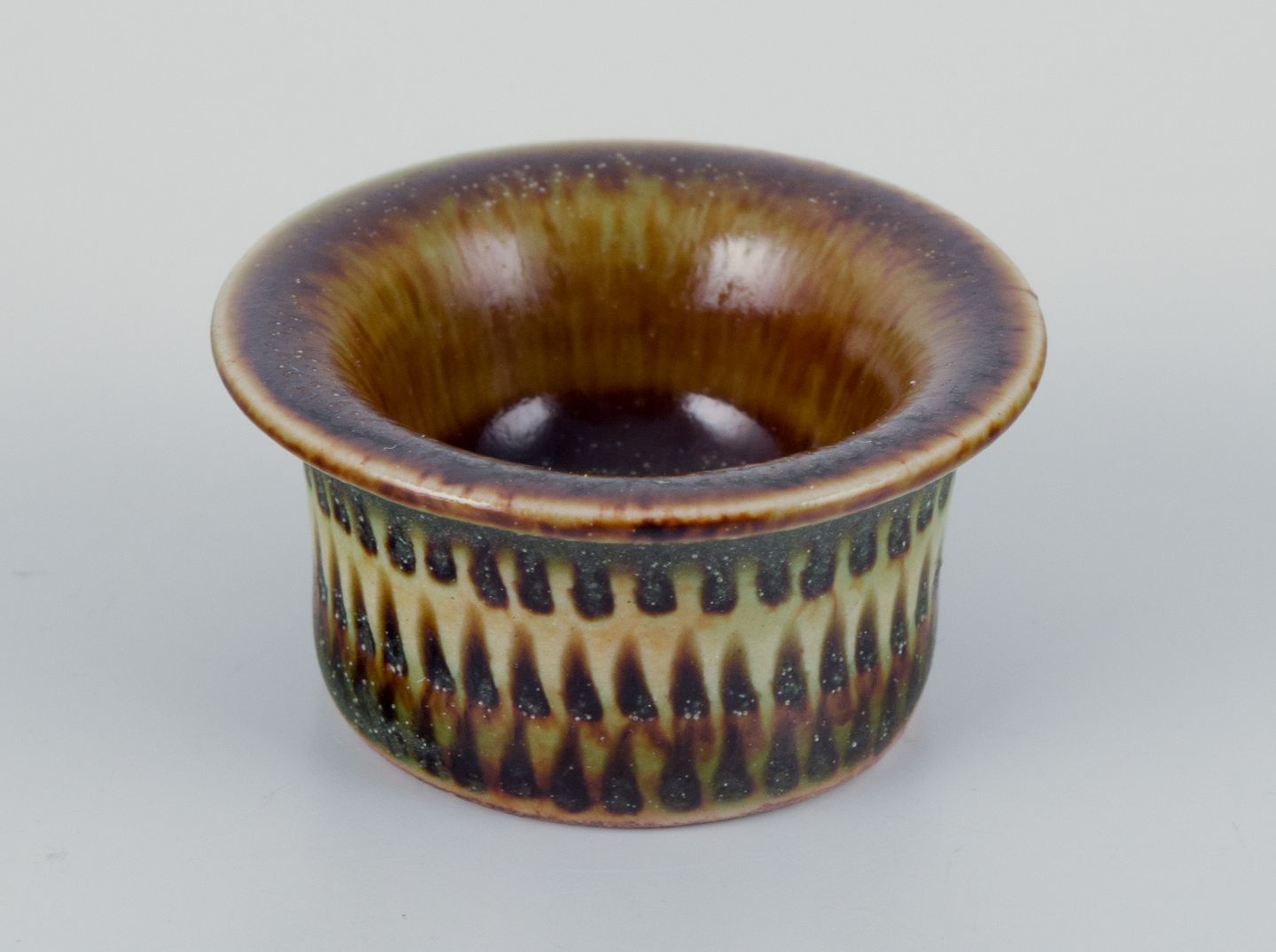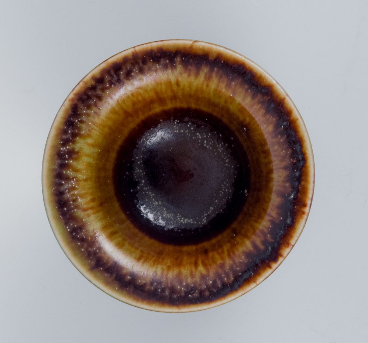 Stig Lindberg (1916-1982), Gustavsberg - Studio Hand, miniature skål med glasur i brune og grønne toner.