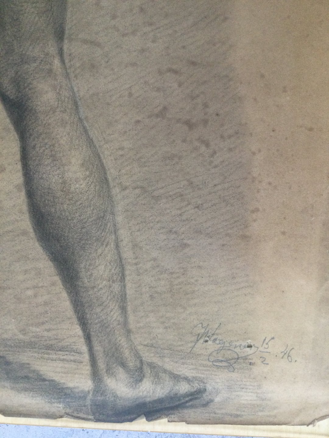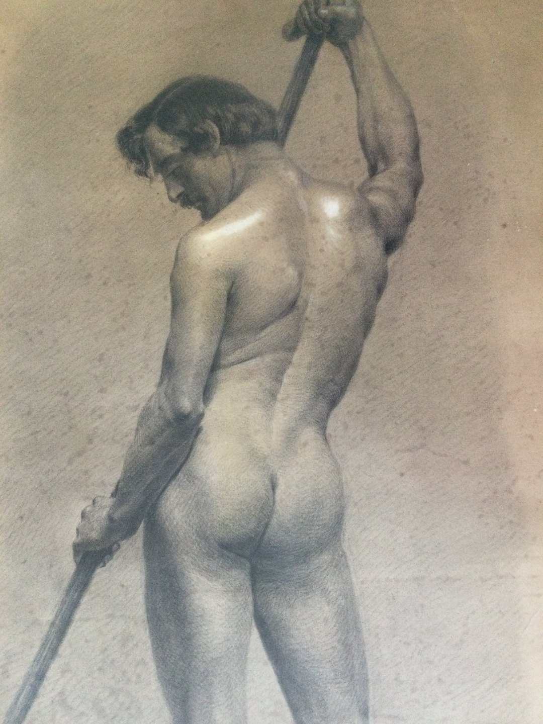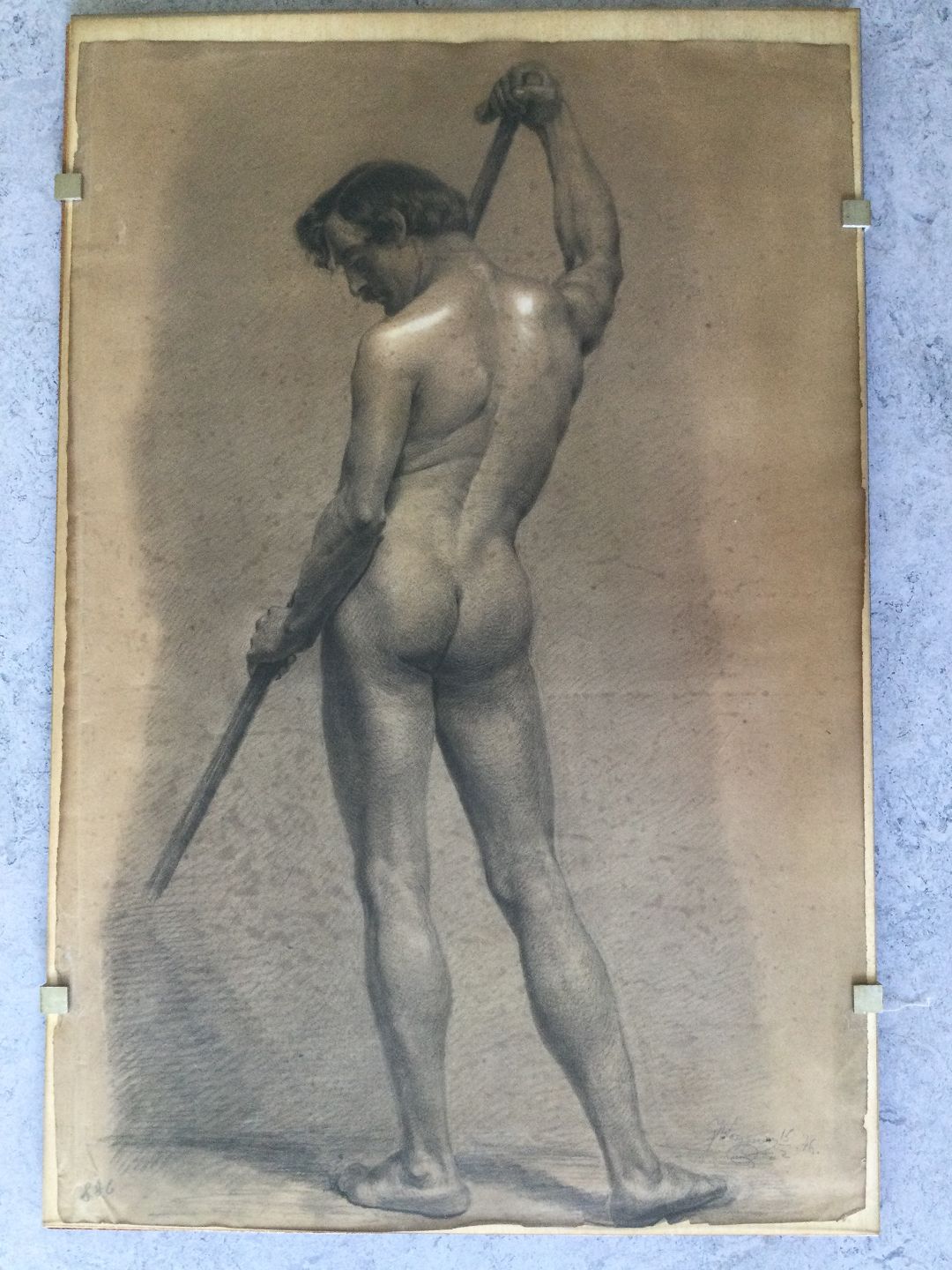Tegning 1846 af J. Wagener - Akademitegning af nøgen mand.