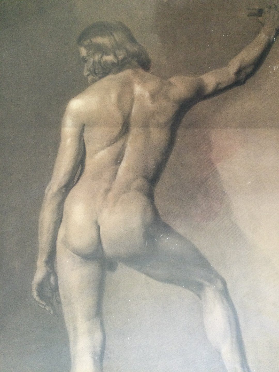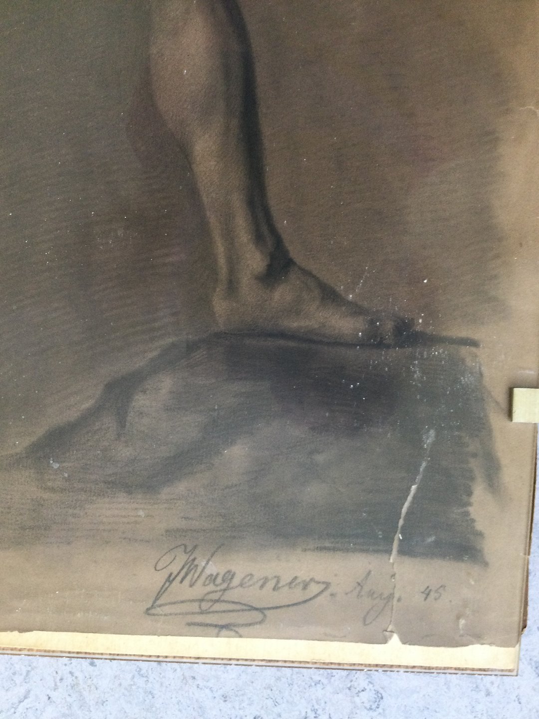 Tegning 1845 af J. Wagener - Akademitegning af nøgen mand.