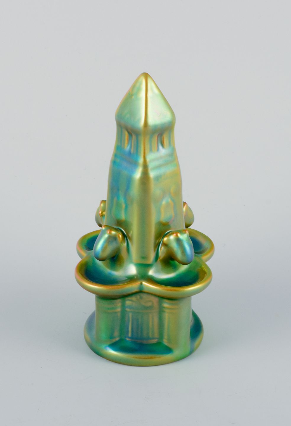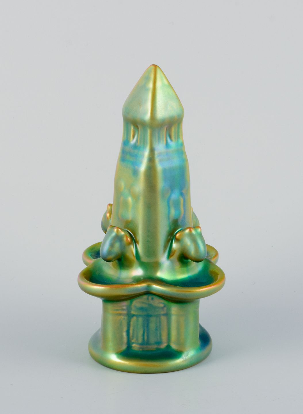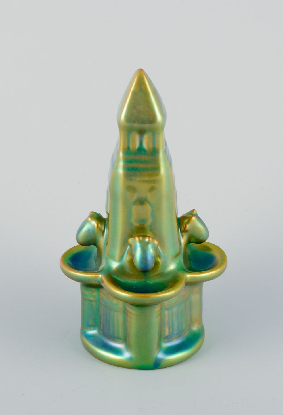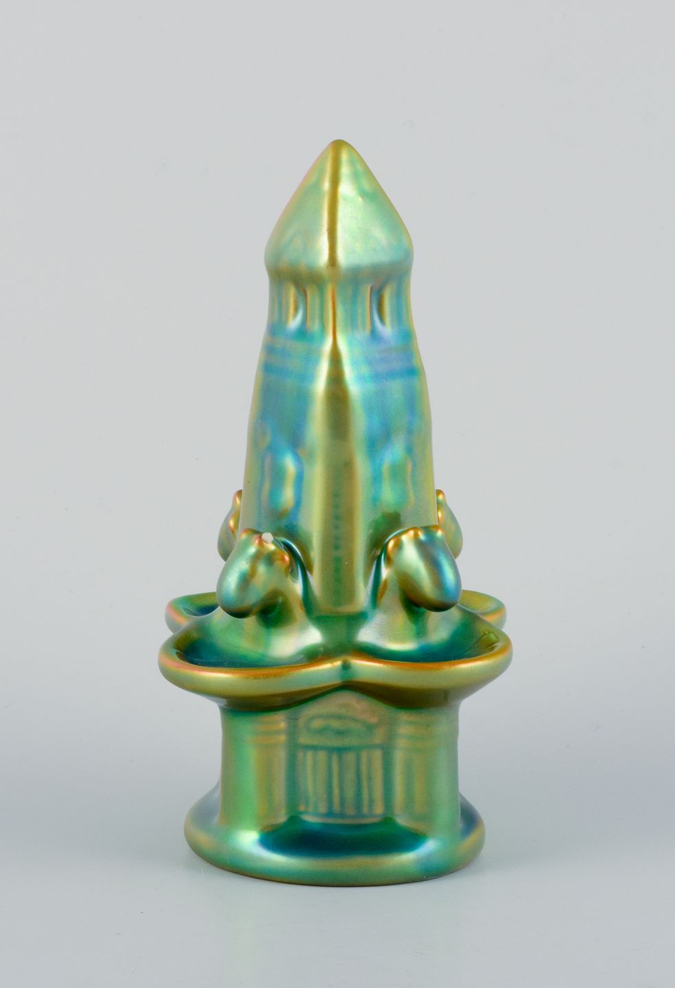 Zsolnay, Ungarn, skulptur i form af fontæne i keramik. Eosin-glasur.