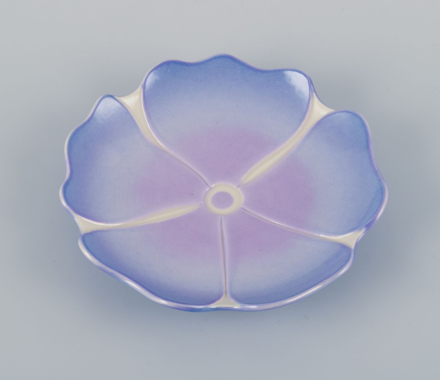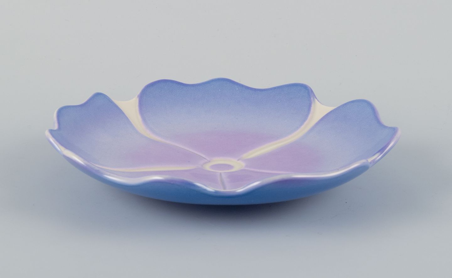 Margareta Hennix for Gustavsberg Studiohand, Sweden, unique ceramic bowl in Art Nouveau style shaped like a flower. Glazed in shades of purple.