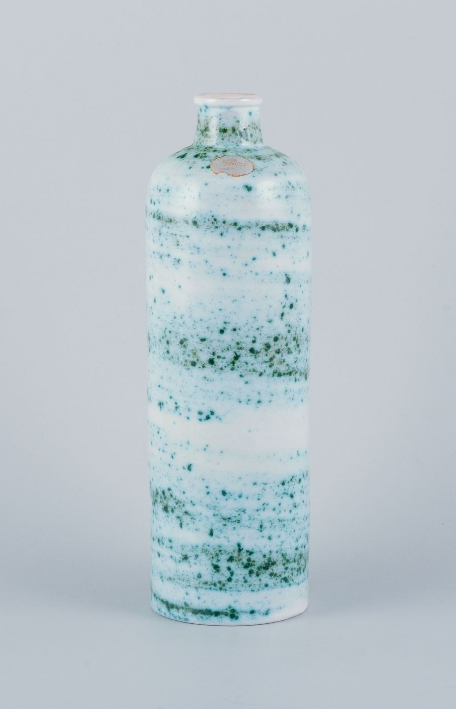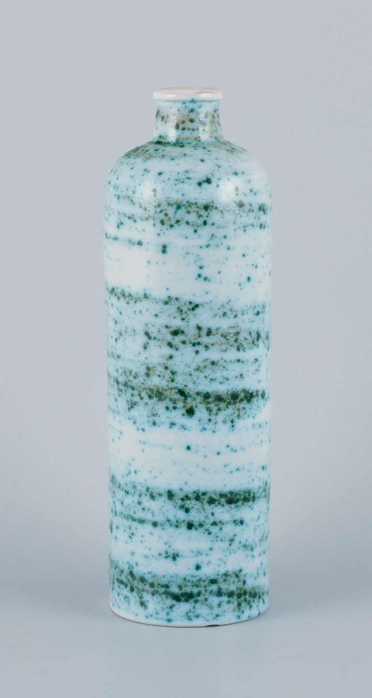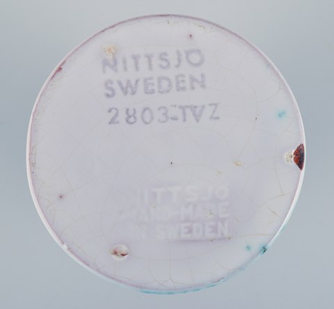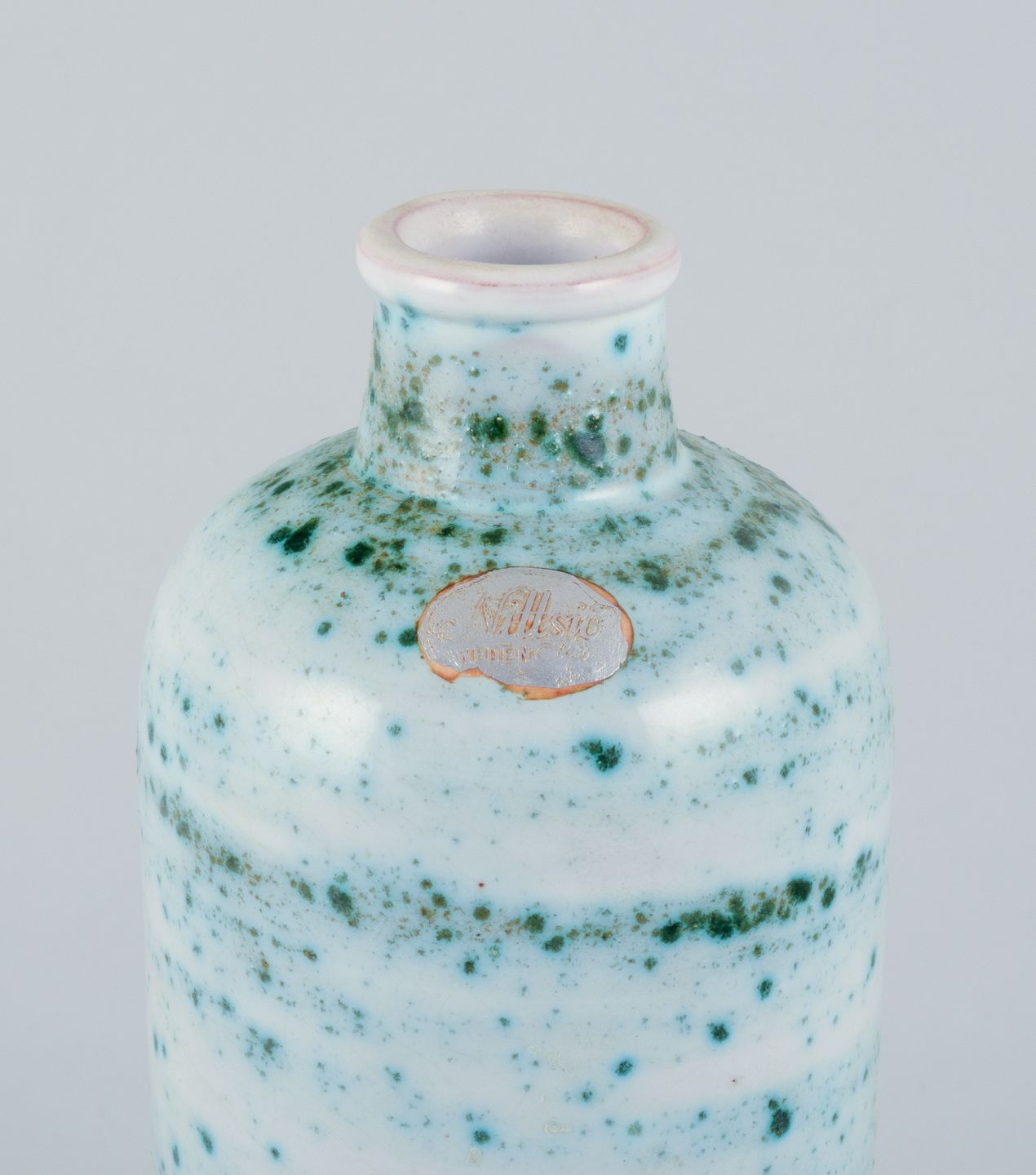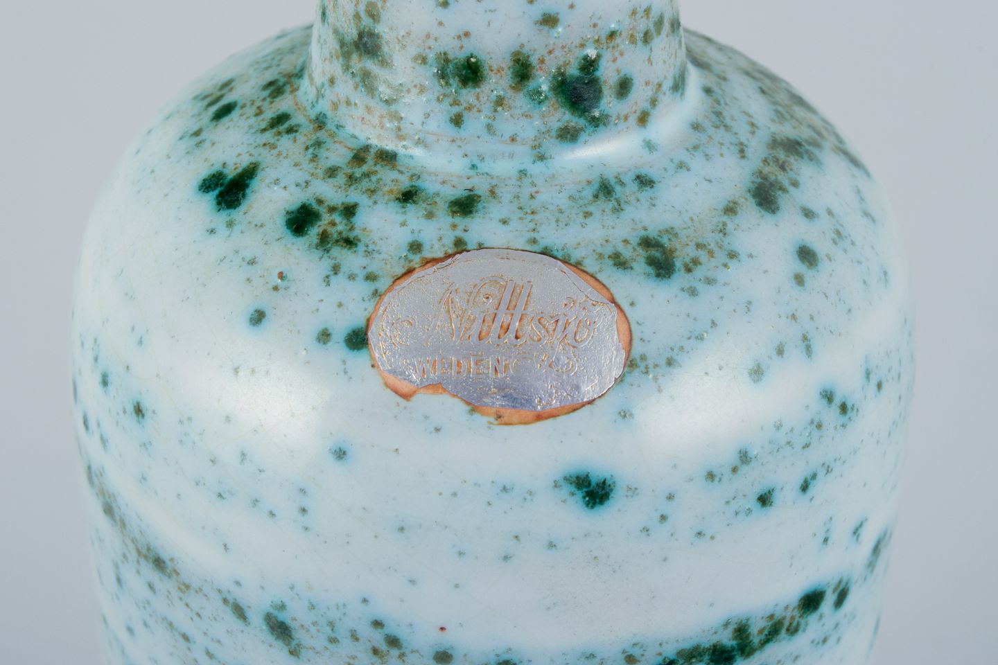 Nittsjö, Sverige, keramikvase, glasur i grønne nuancer på hvid bund.