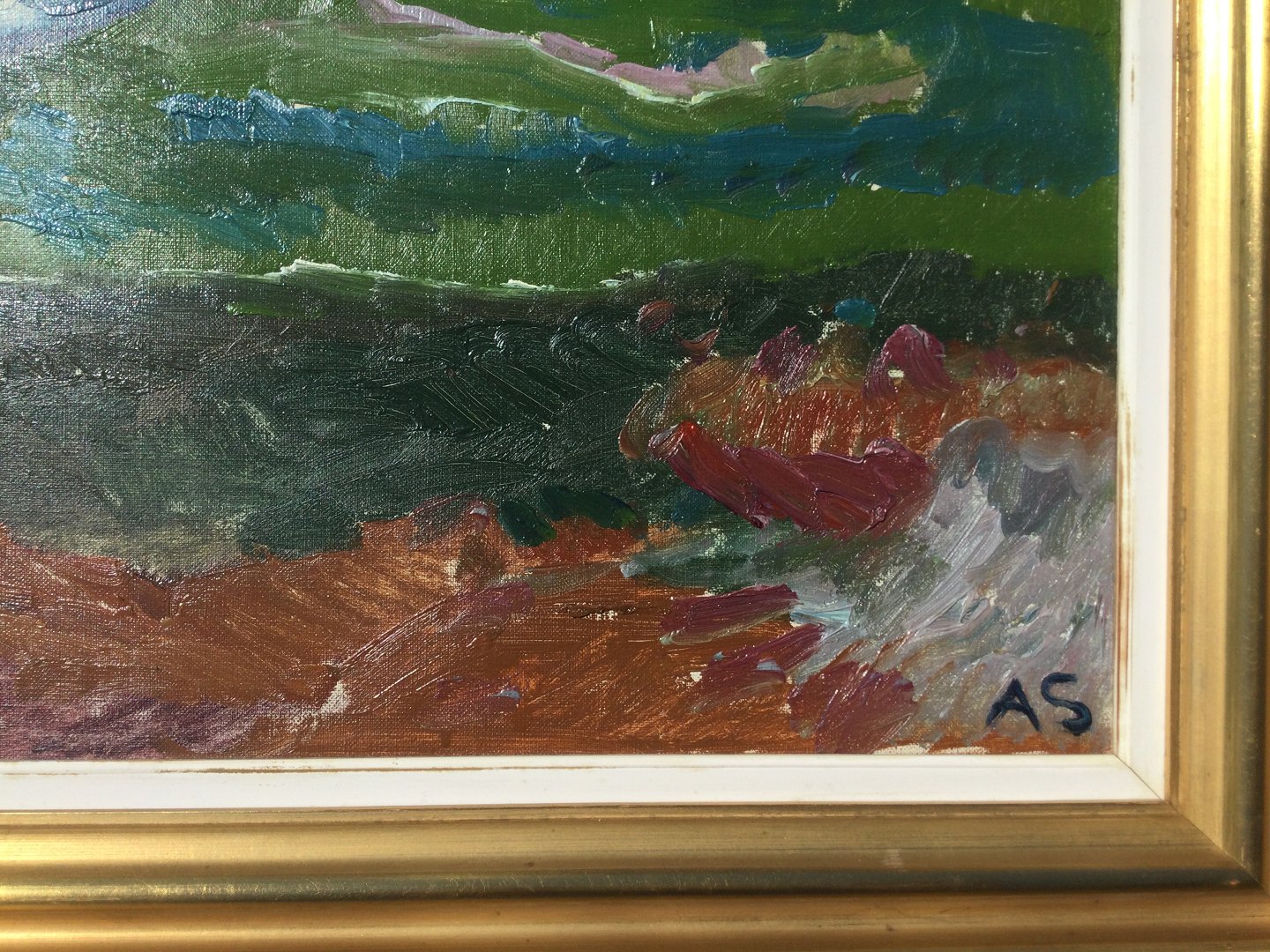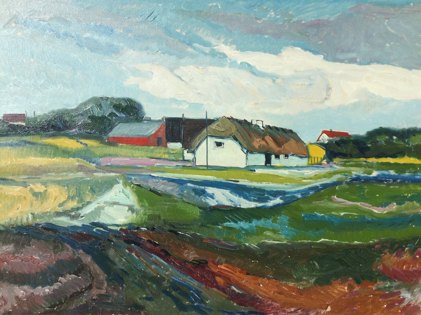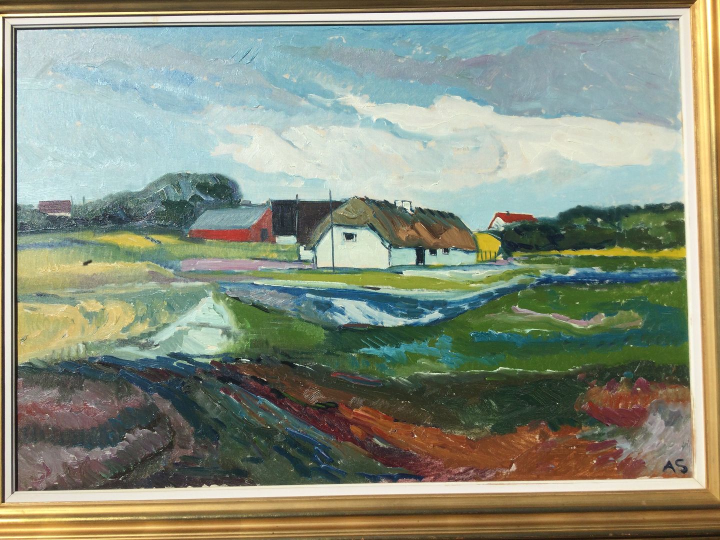 Maleri af Aage Strand - Gårde i landskab.