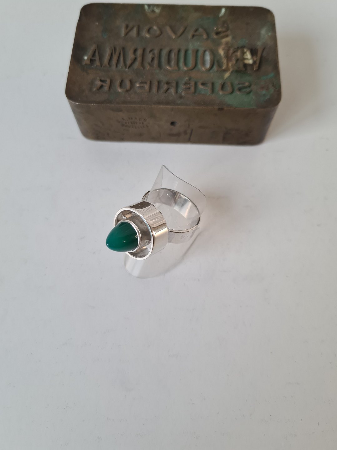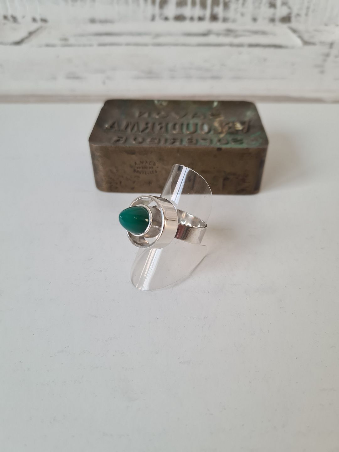 N.E.From vintage ring i sølv med grøn sten
