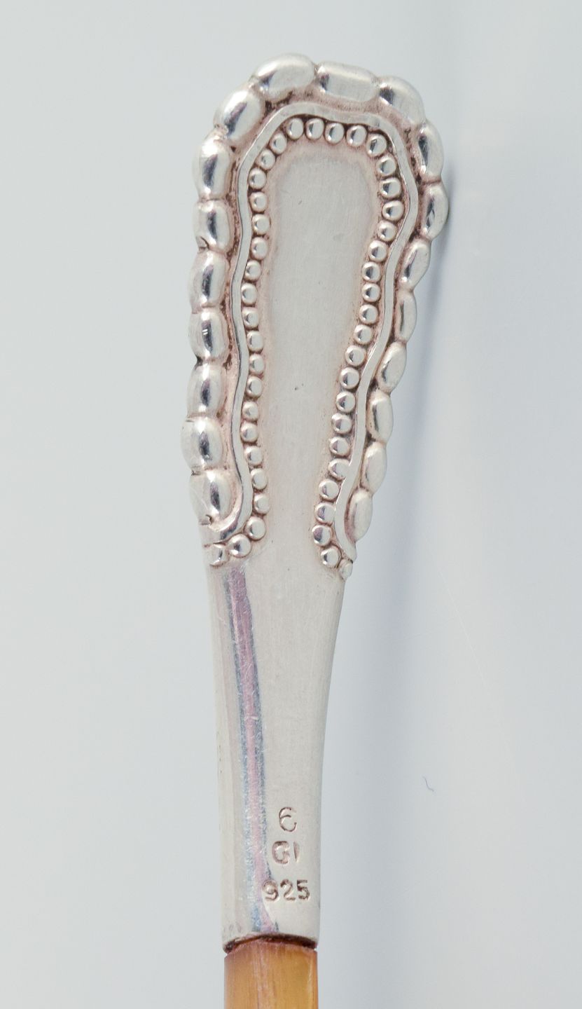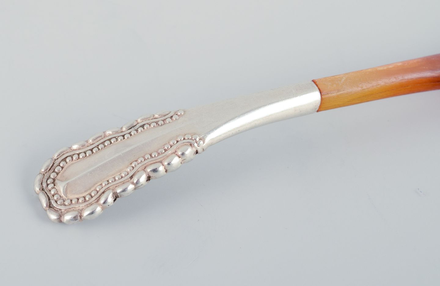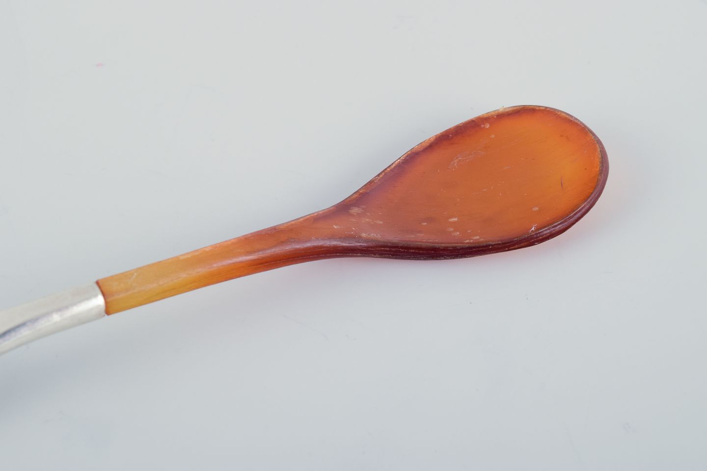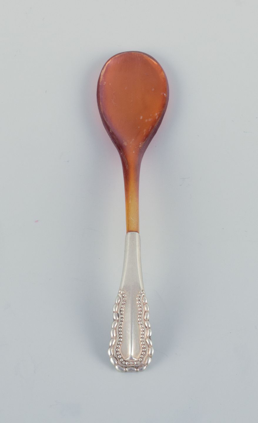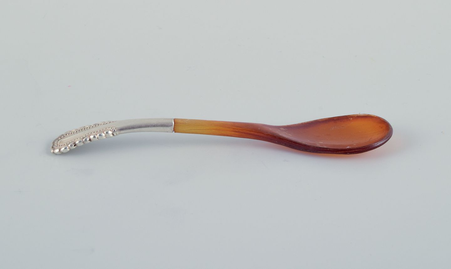Georg Jensen, Nordisk, sjælden saltske med laf i ravfarvet horn. Sterlingsølv.