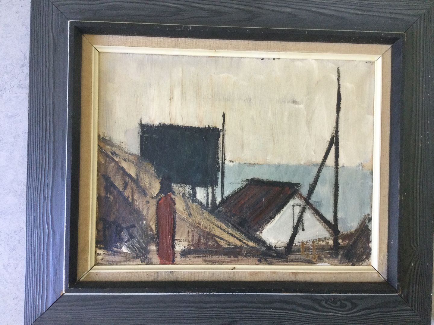 Maleri - Peder Brøndum Sørensen 1971 - Huse ved Havet.
