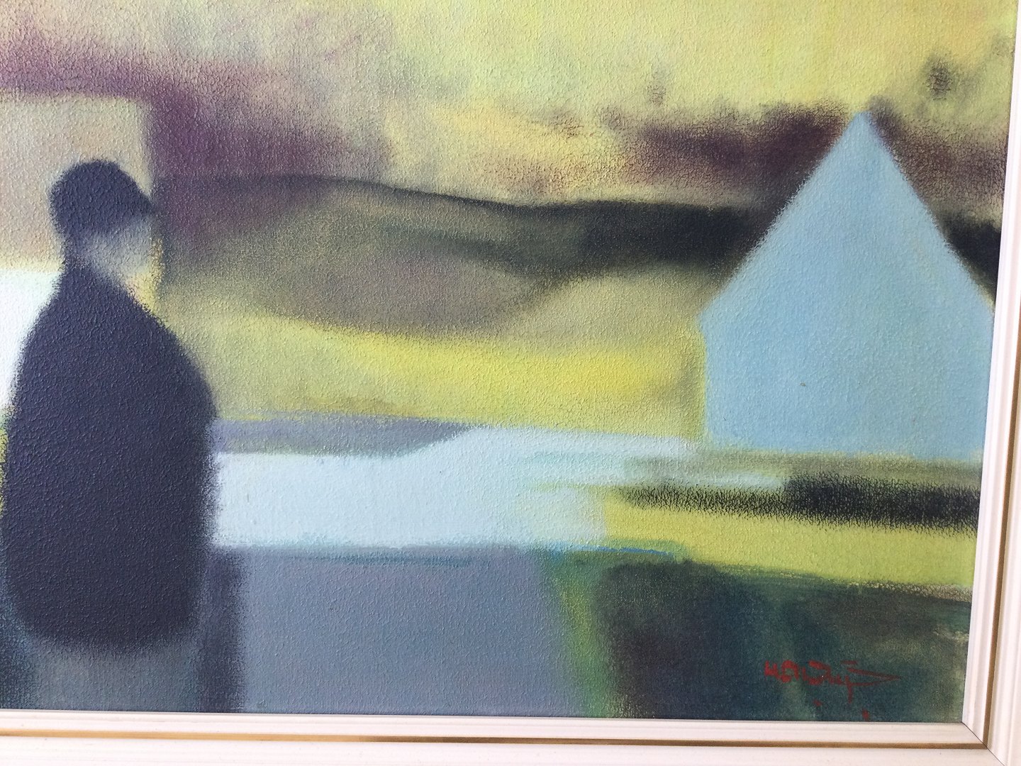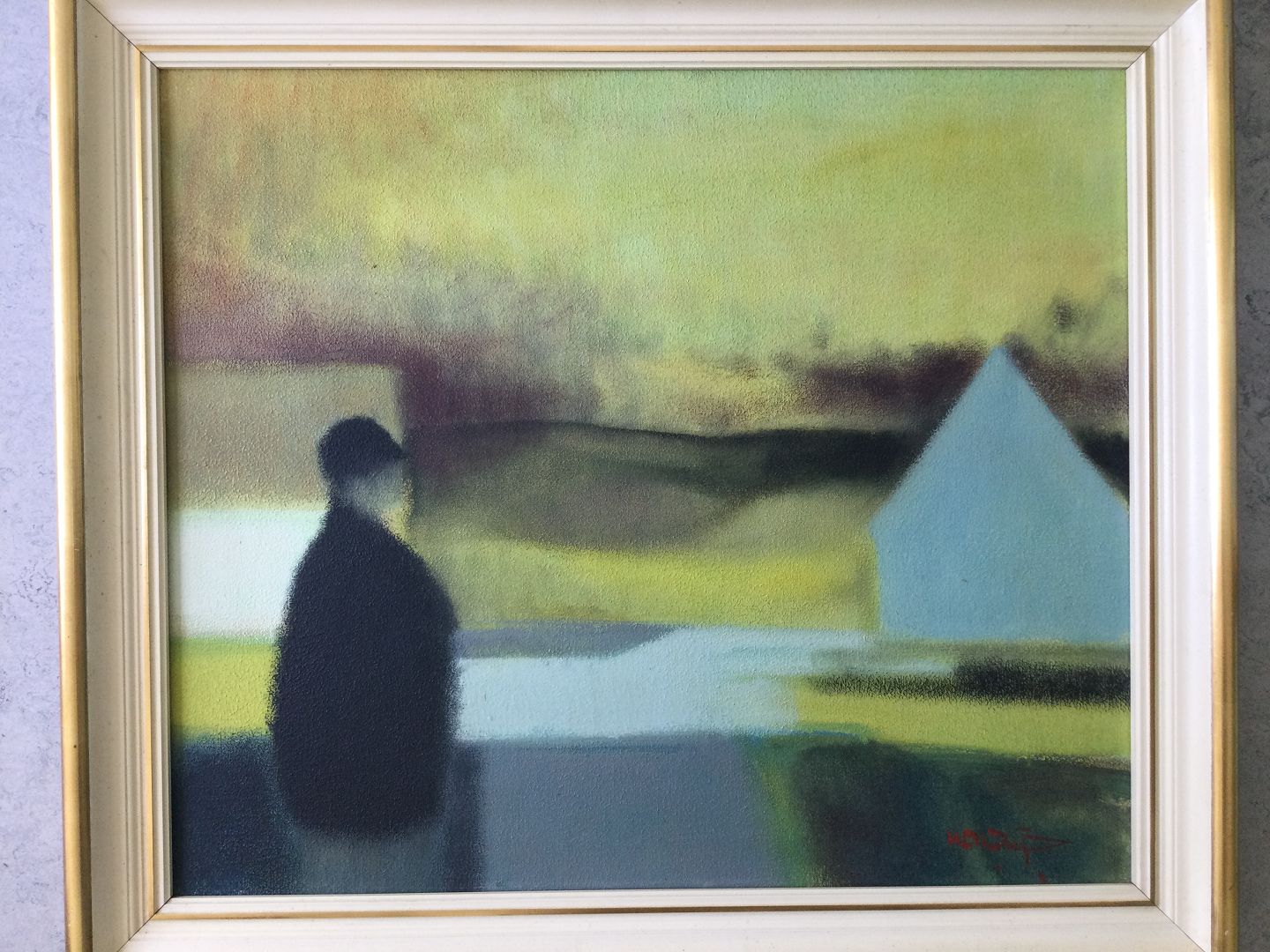 Maleri af Knud Horup - Person i i landskab med gårde.