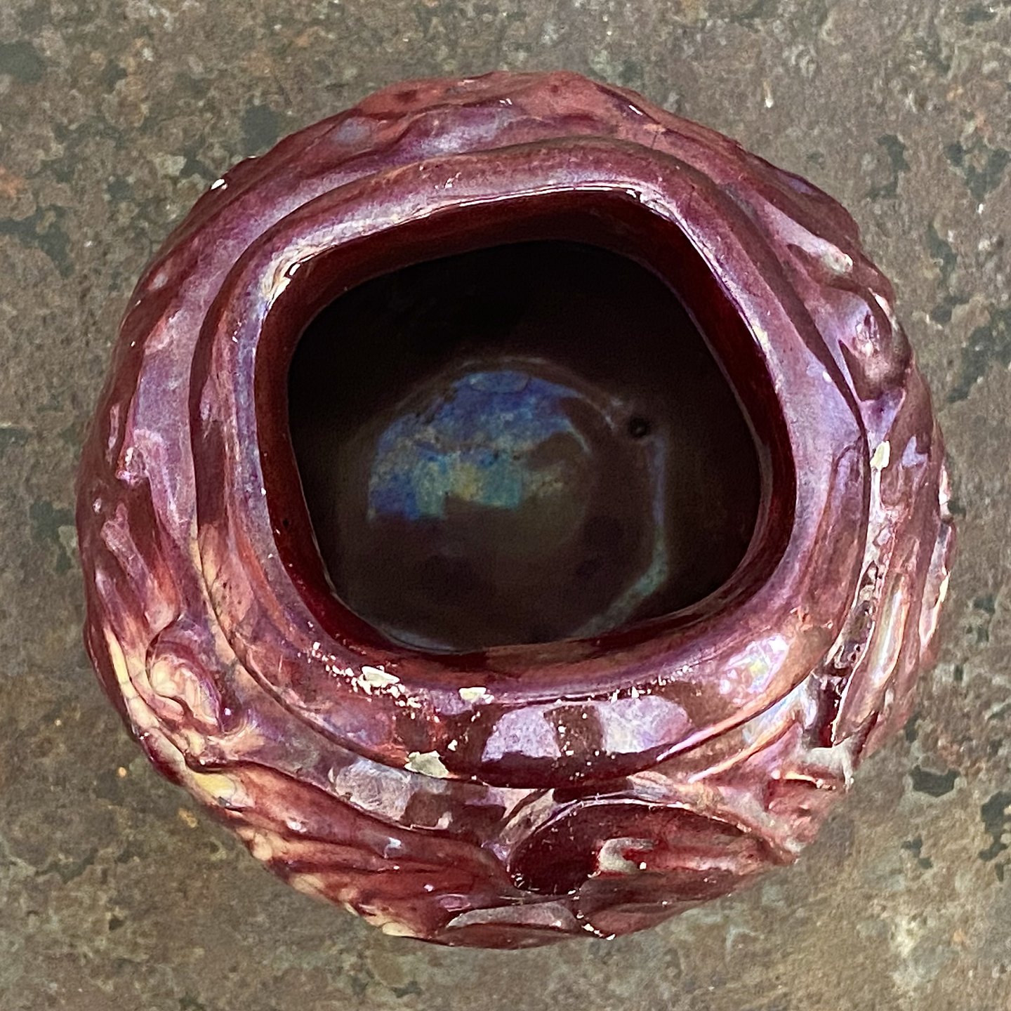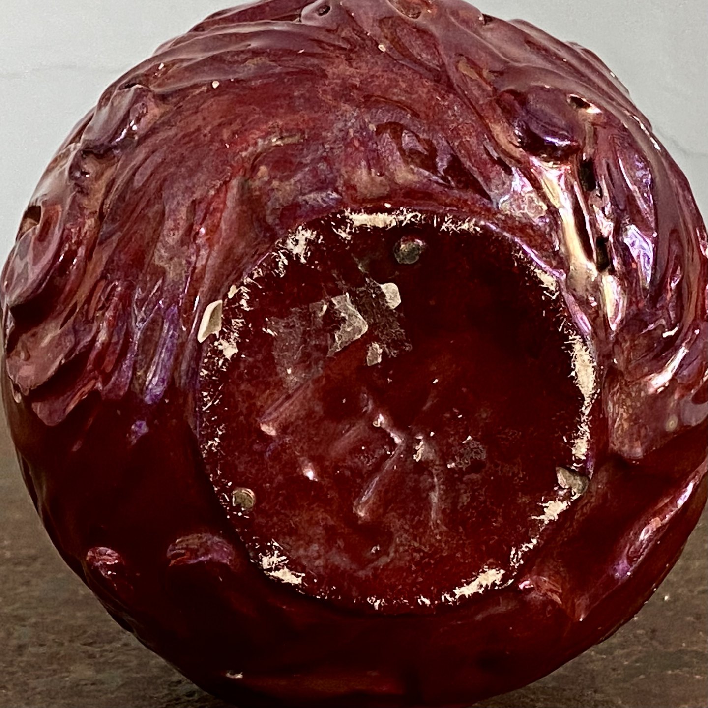 Lille vase forgivet af Svend Hammershøi i 1913 med Jens Thirslunds røde lustreglasur.