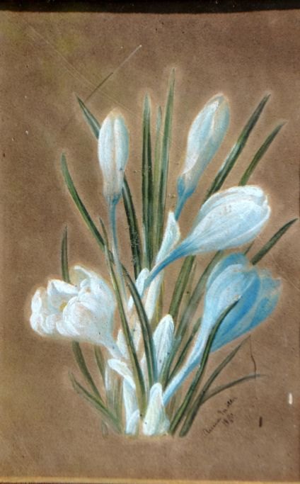Møller, Anna (19. årh.) Danmark: Krokus. Pastel på papir. Signeret.: Anna Møller 1890. 21,5 x 15 cm.