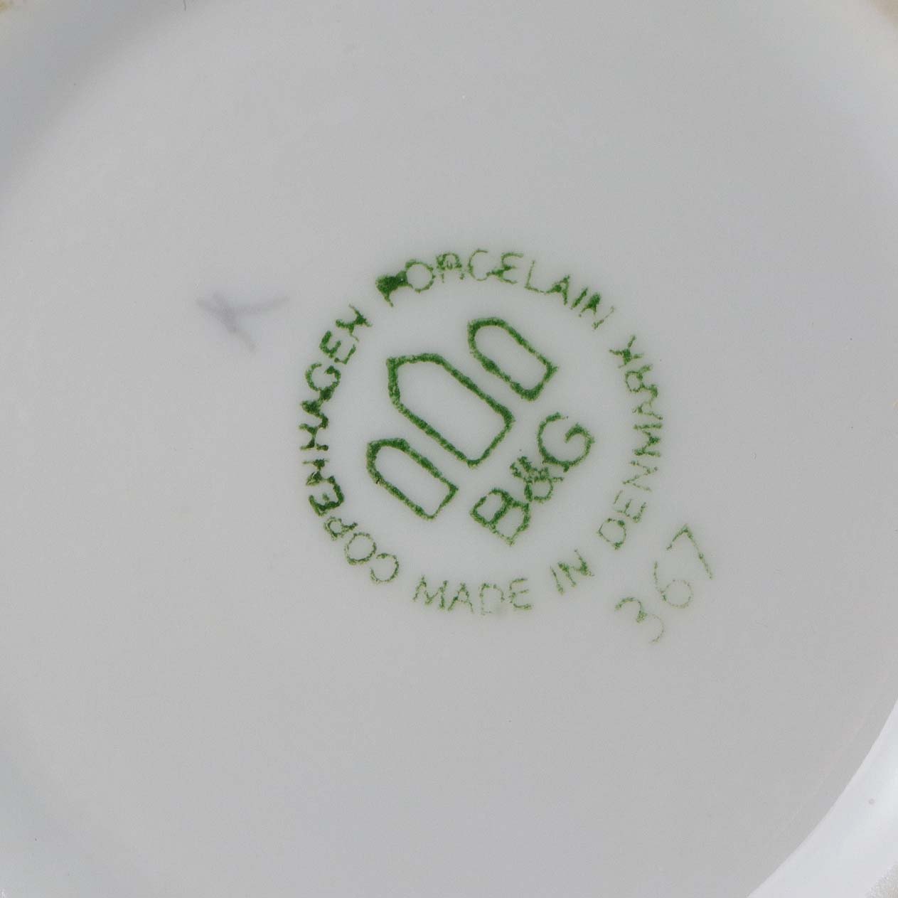 Lighter med porcelæn i blålige farver dekoreret med måger og guldkant