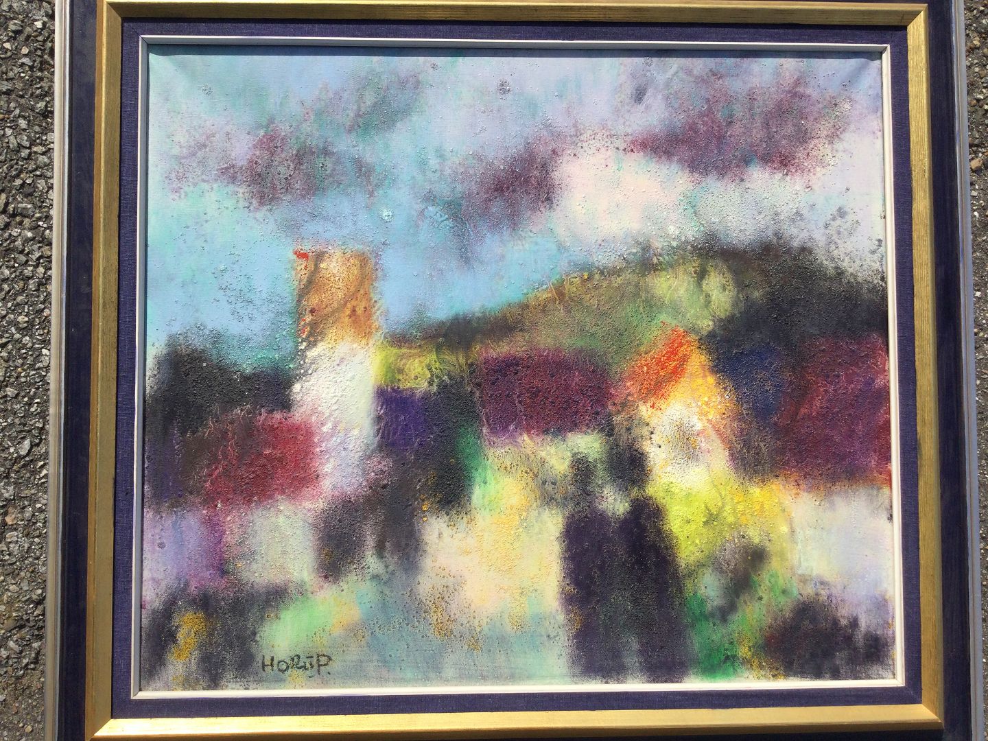 Maleri af Knud Horup - Personer ved kirke.