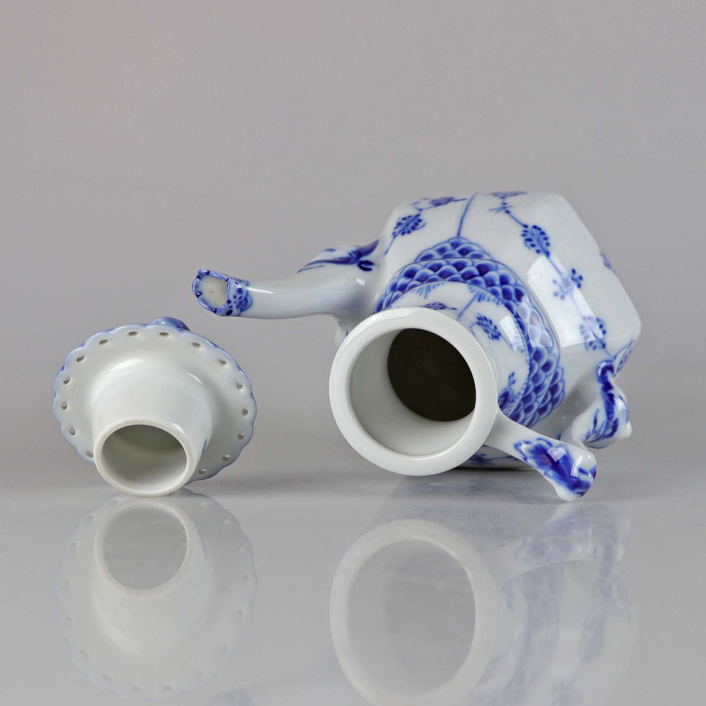 Kaffekande i porcelæn fra stellet Musselmalet helblonde med dobbelt hoveder