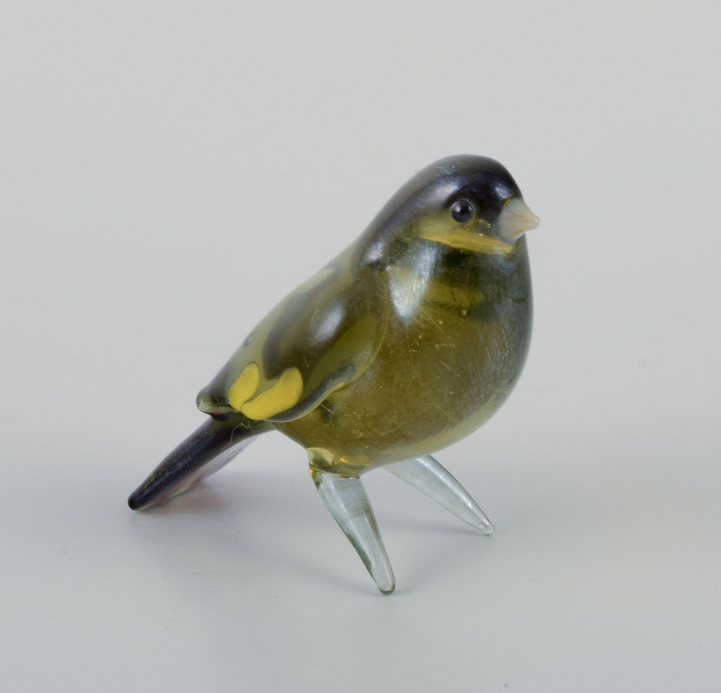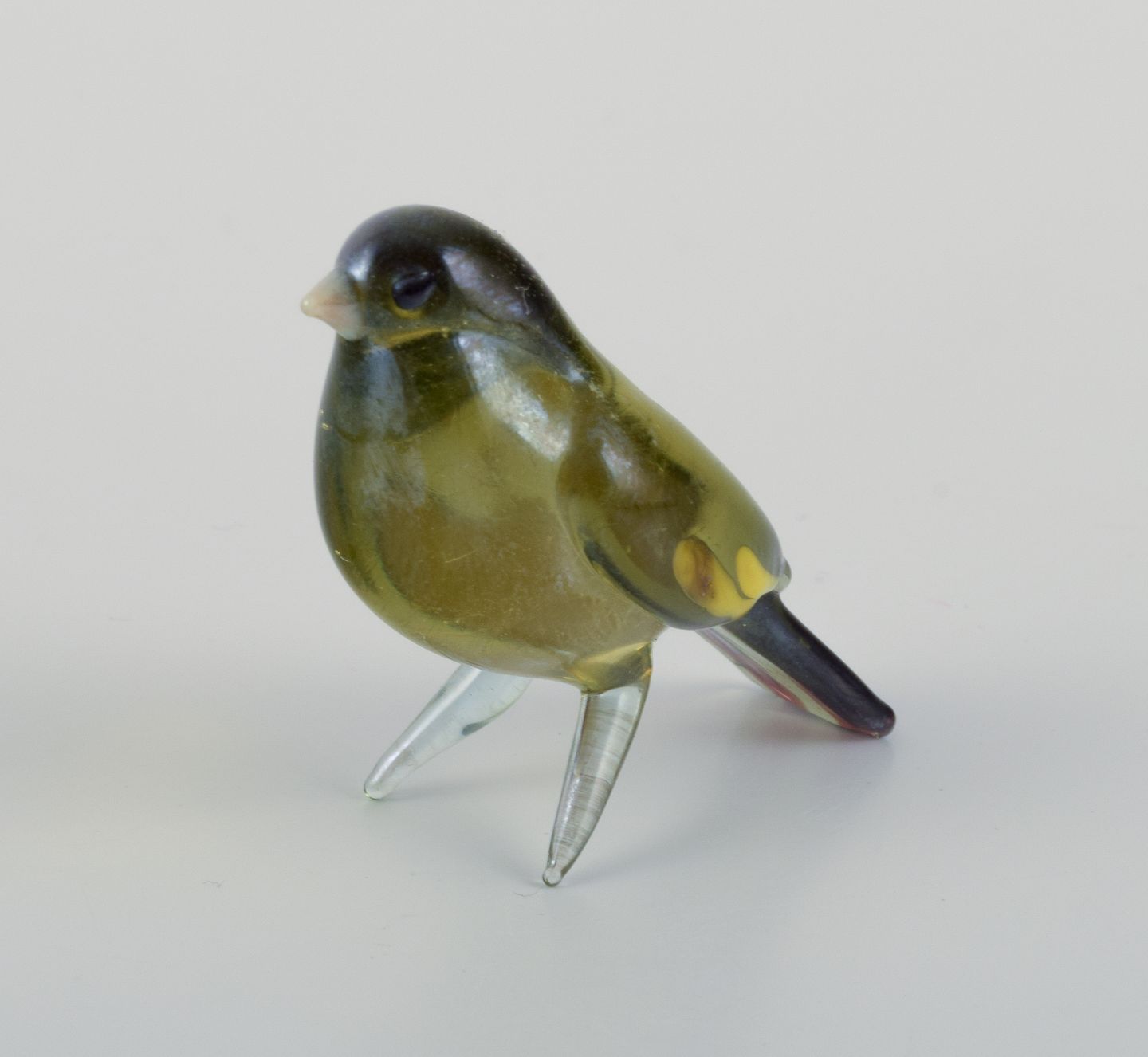 Murano, Italien. En samling på fire miniature glasfigurer af fugle i farvet kunstglas.