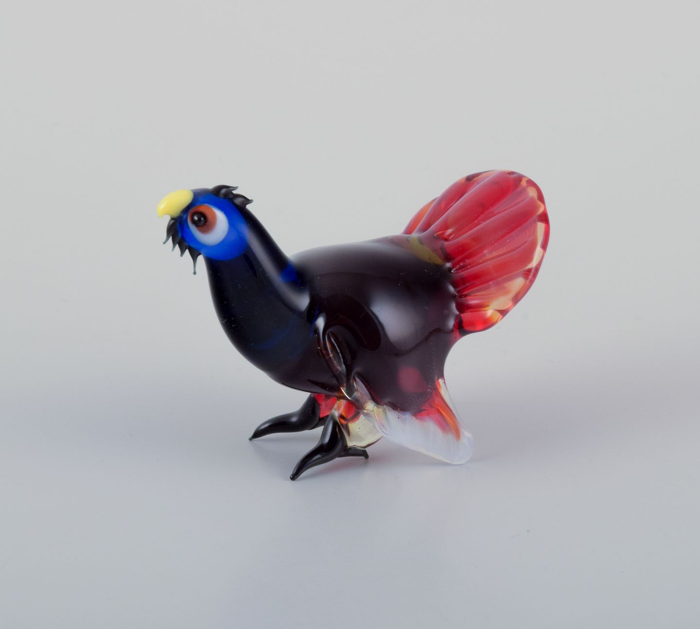 Murano, Italien. En samling på fire miniature glasfigurer af fugle i farvet kunstglas.
