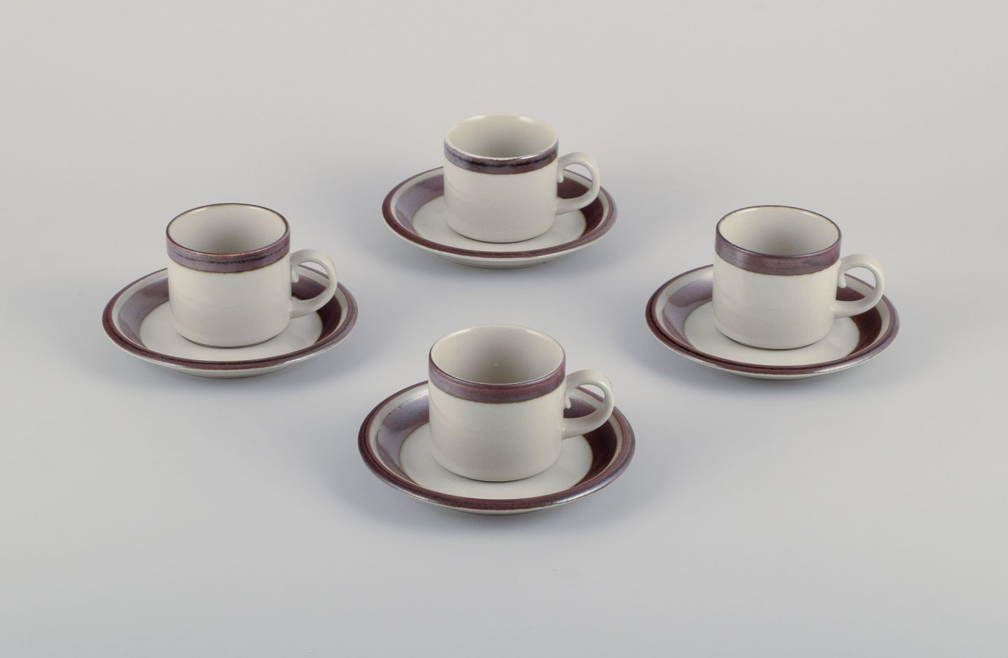 Arabia, Finland. Karelia. Fire sæt små kaffekopper og tilhørende underkopper i stentøj.