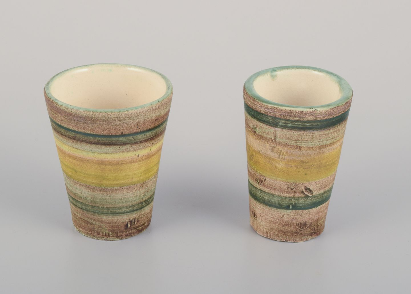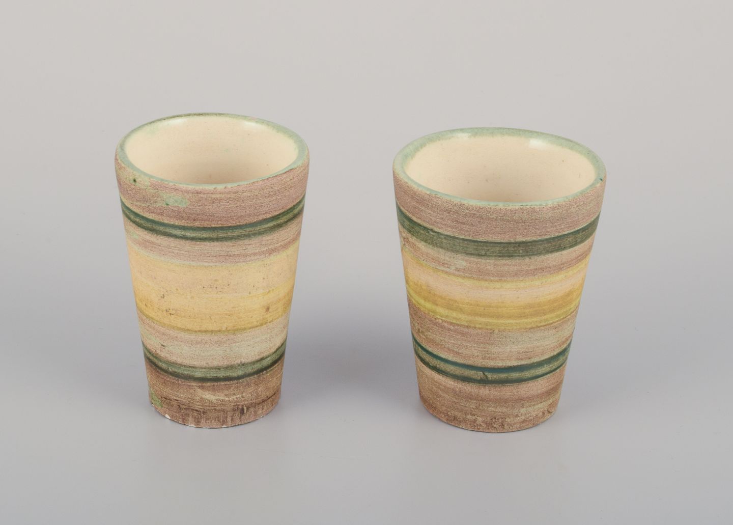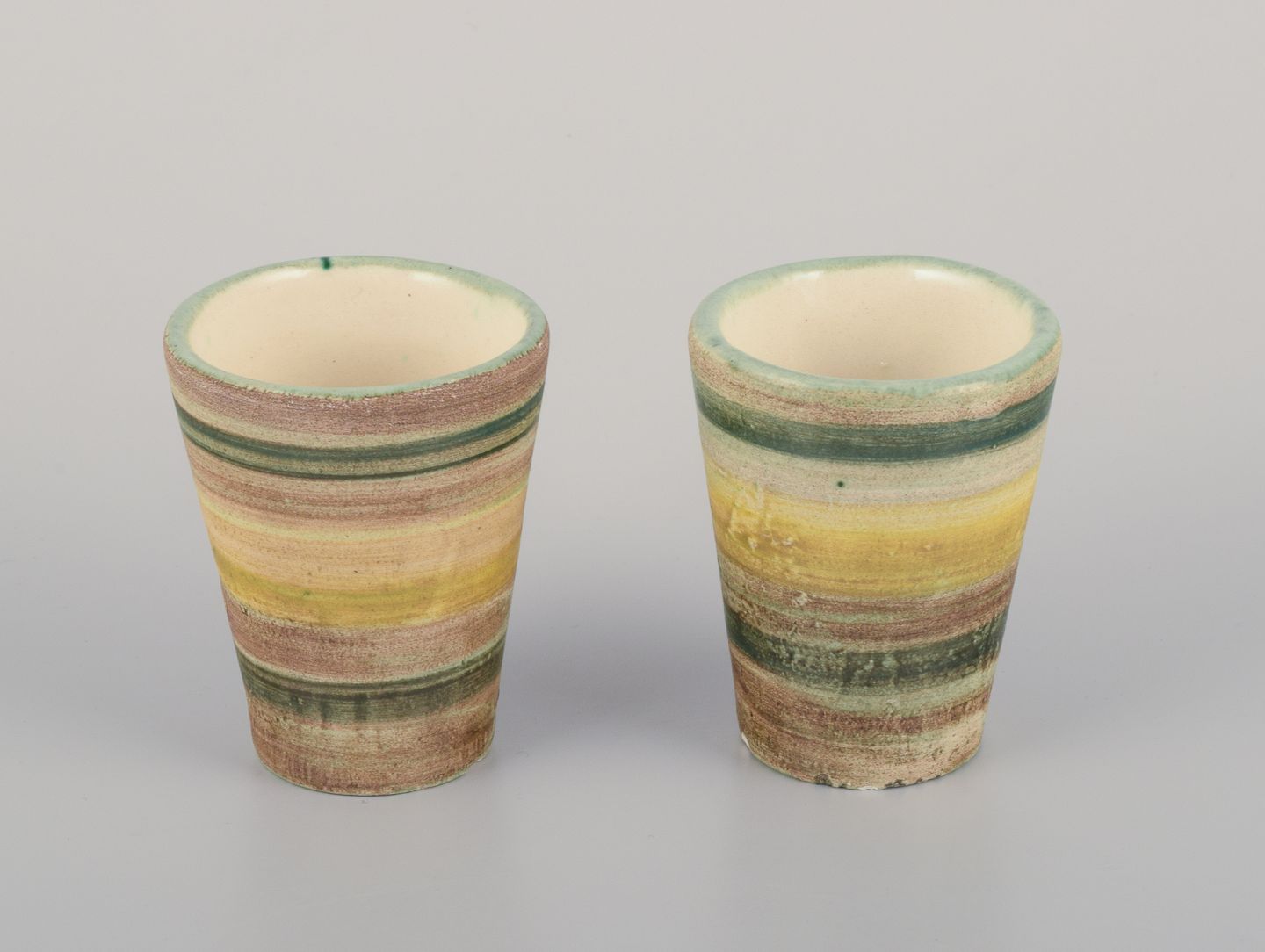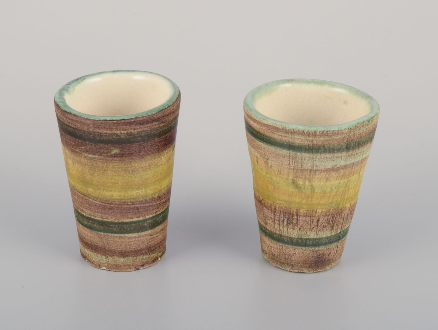 Vallauris, Frankrig. Et sæt på otte unika keramikbægre.