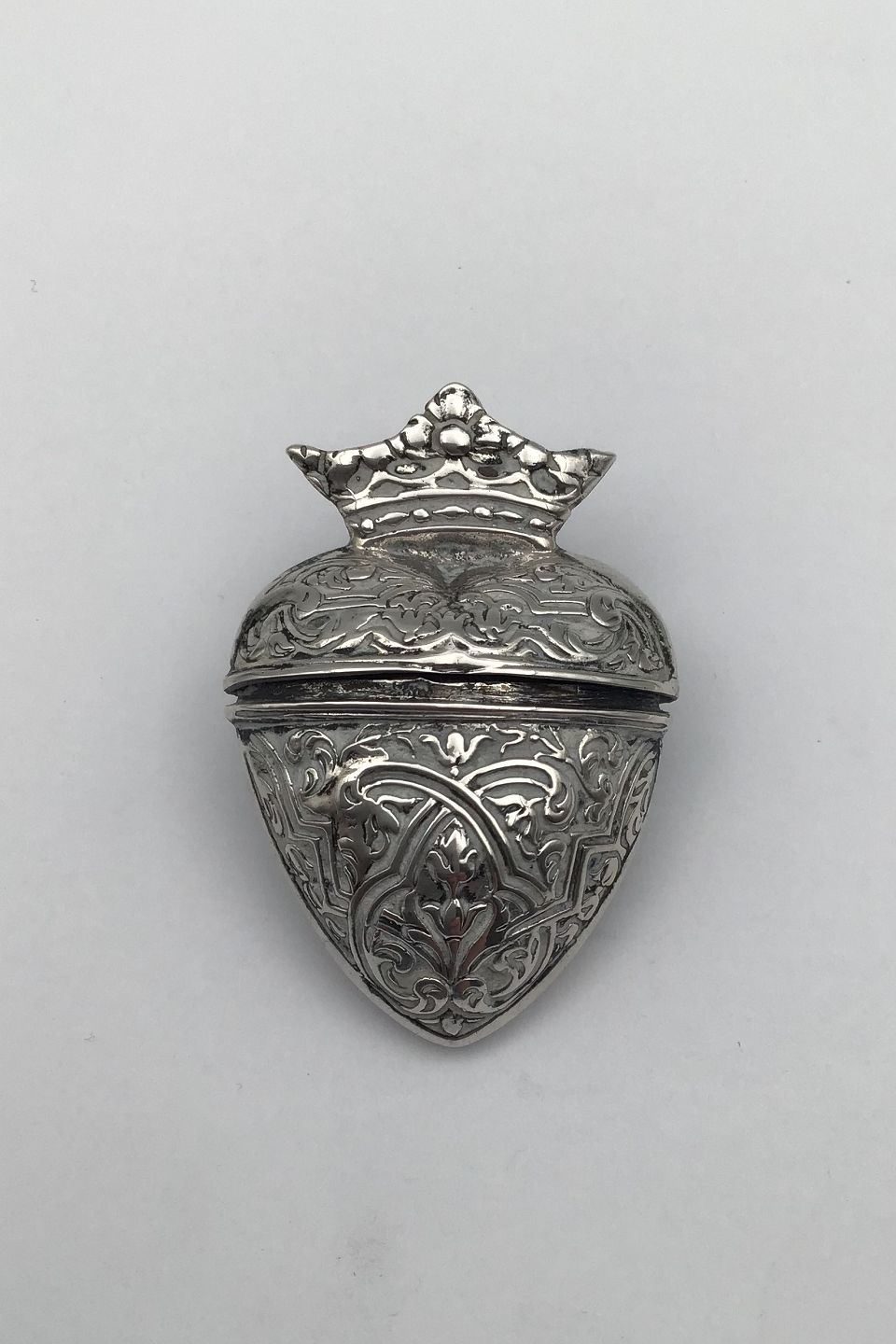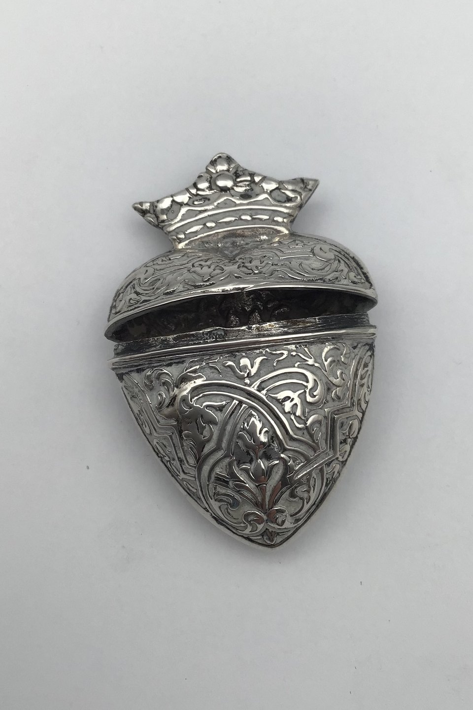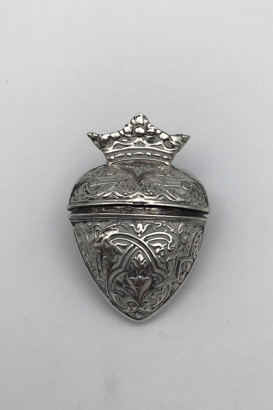 Dansk ? Sølv Hovedvandsæg Hjerteformet m Krone