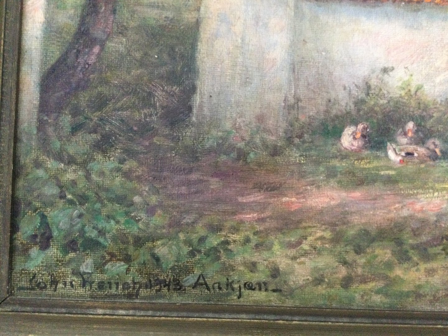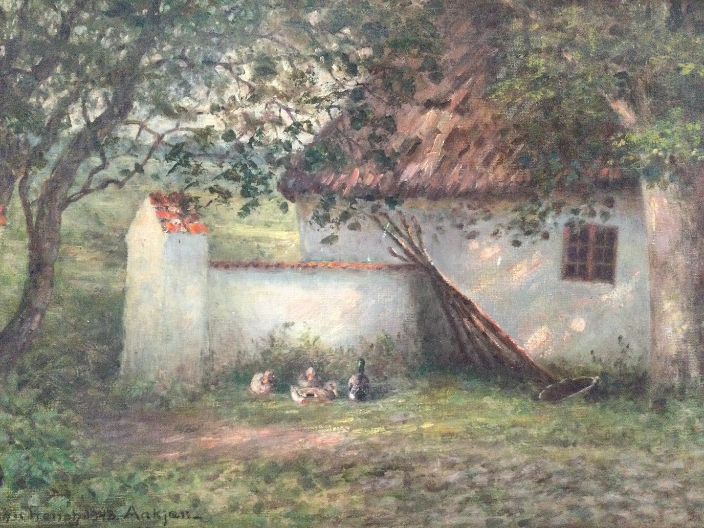 Maleri af John French - Gårdeksteriør fra Aakjær 1943.