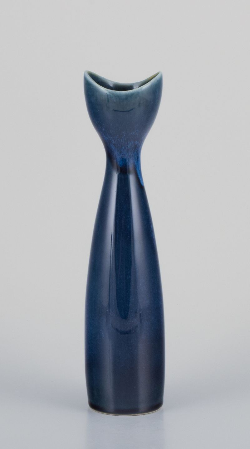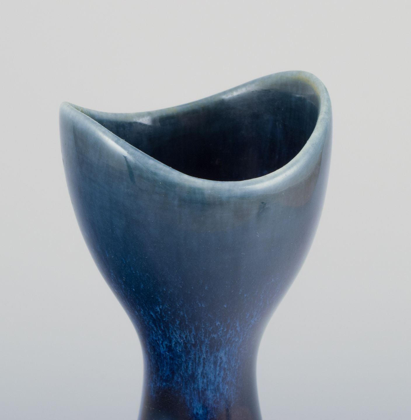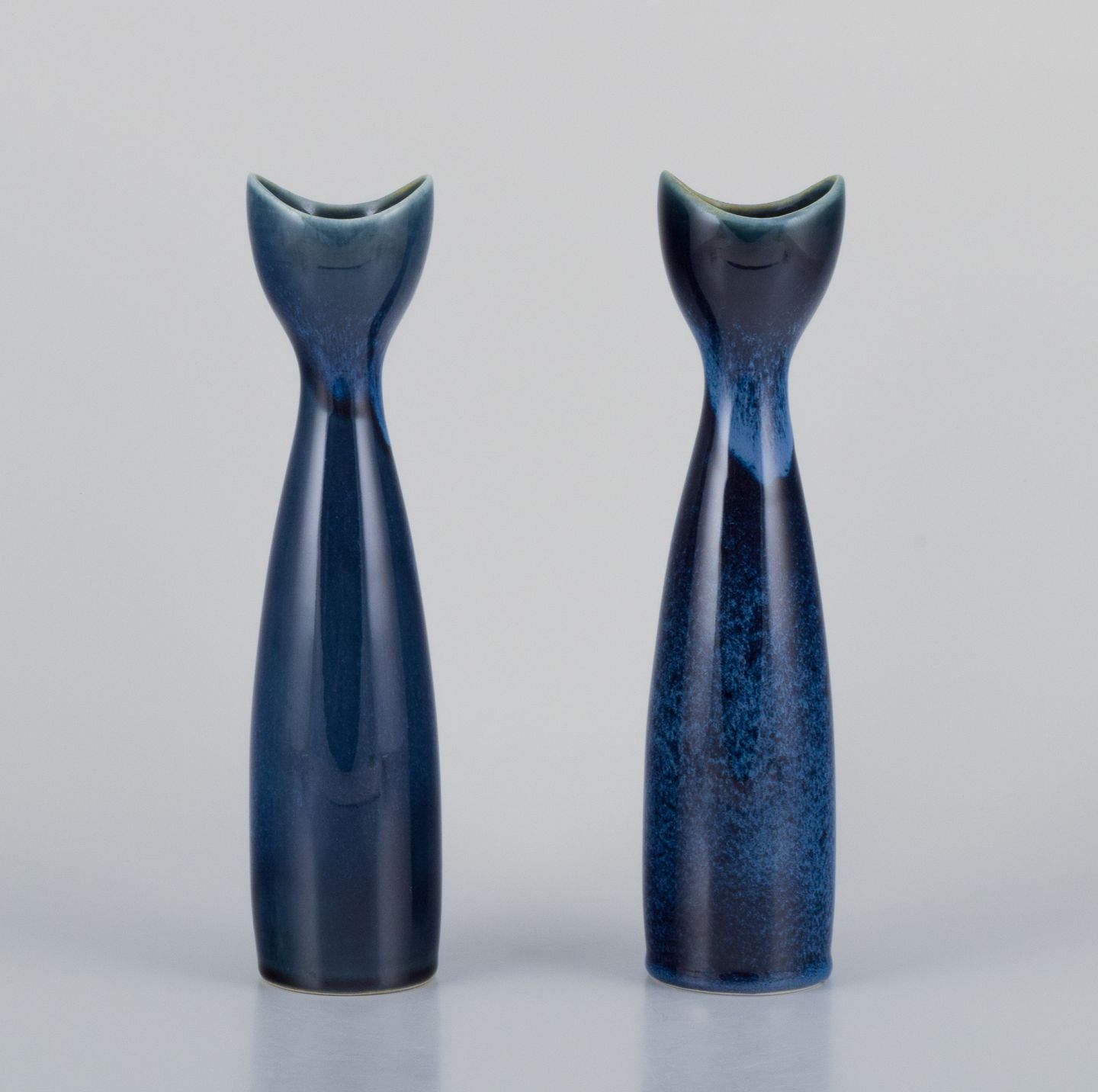 Stig Lindberg for Gustavsberg, Sverige. Et par ”Azur” keramikvaser med glasur i azurblå nuancer. Håndmalet.