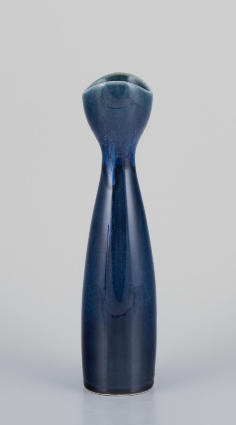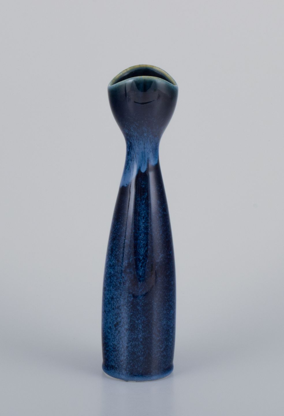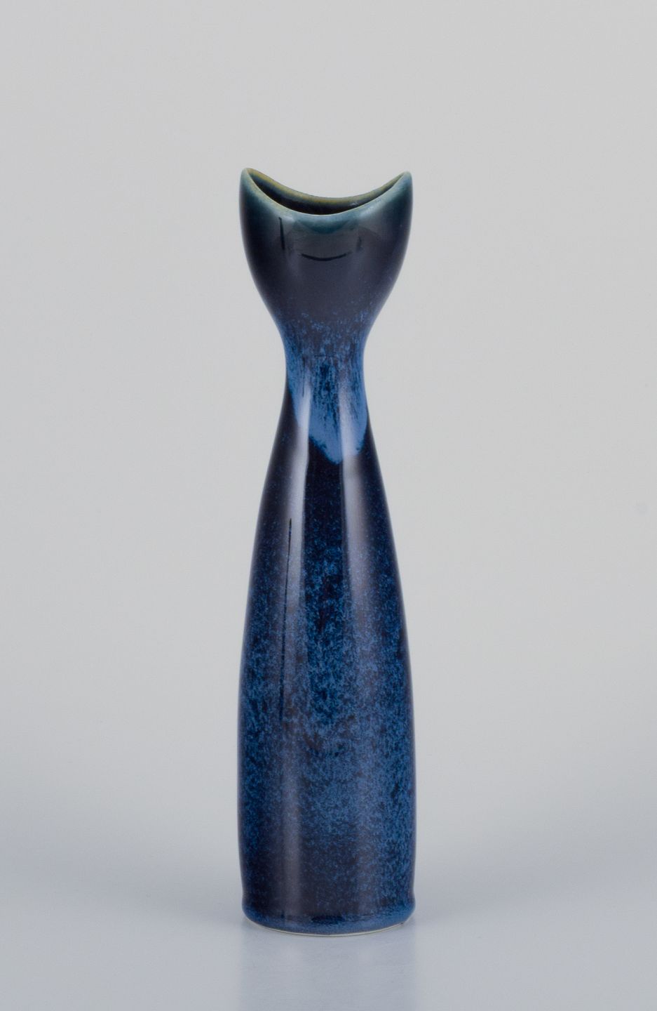 Stig Lindberg for Gustavsberg, Sverige. Et par ”Azur” keramikvaser med glasur i azurblå nuancer. Håndmalet.