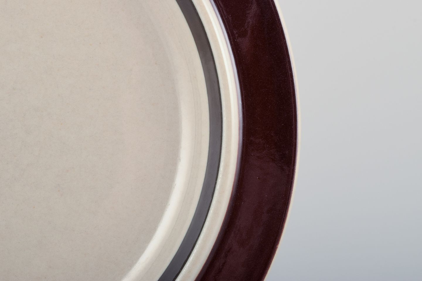Raija Uosikkinen og Ulla Procopé for Arabia, Finland. Et sæt på fire Ruija middagstallerkner i stentøj med brun dekoration.