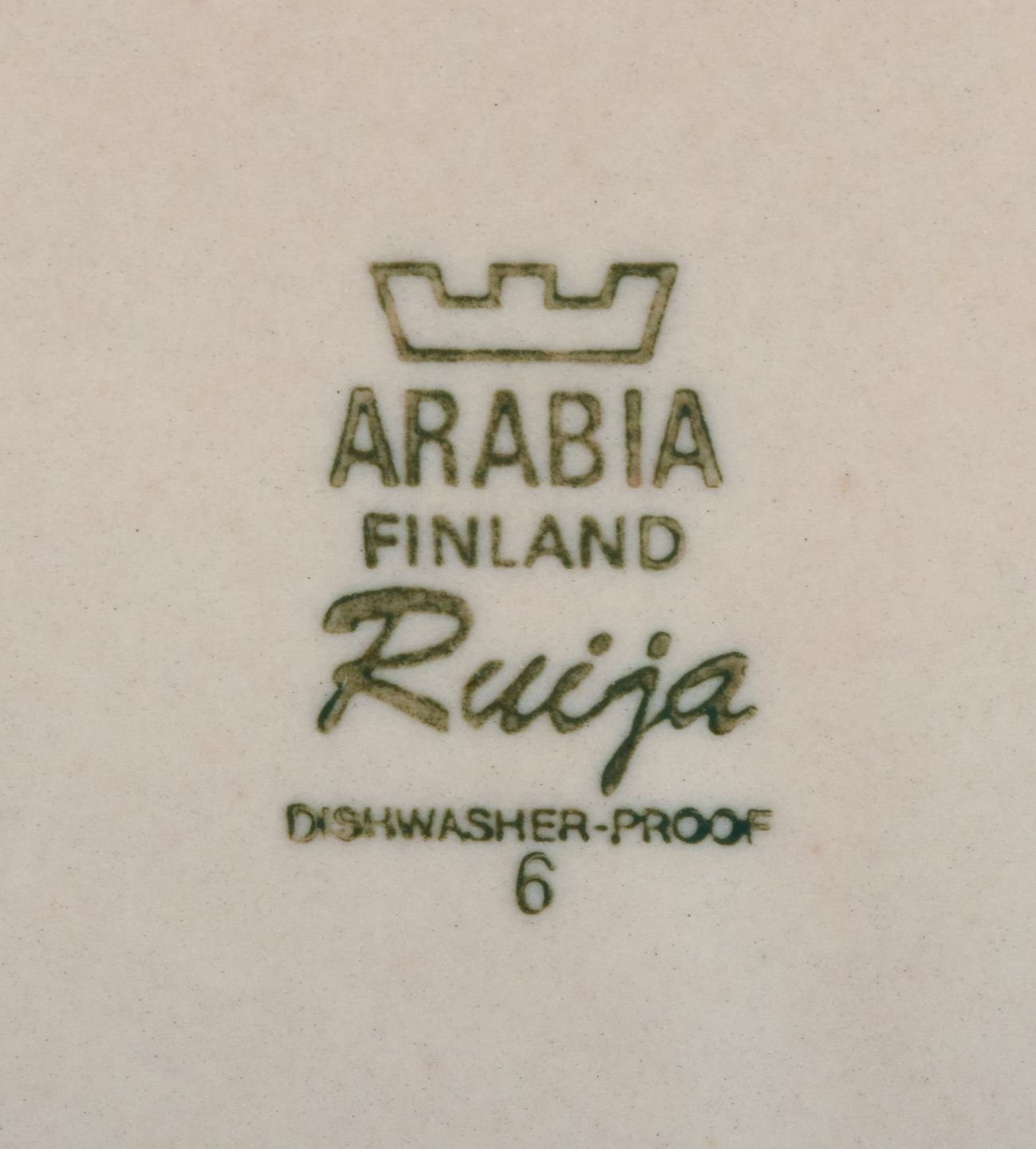 Raija Uosikkinen (1923–2004) og Ulla Procopé (1921–1968) for Arabia, Finland. Et sæt på fire Ruija middagstallerkner i stentøj med brun dekoration.