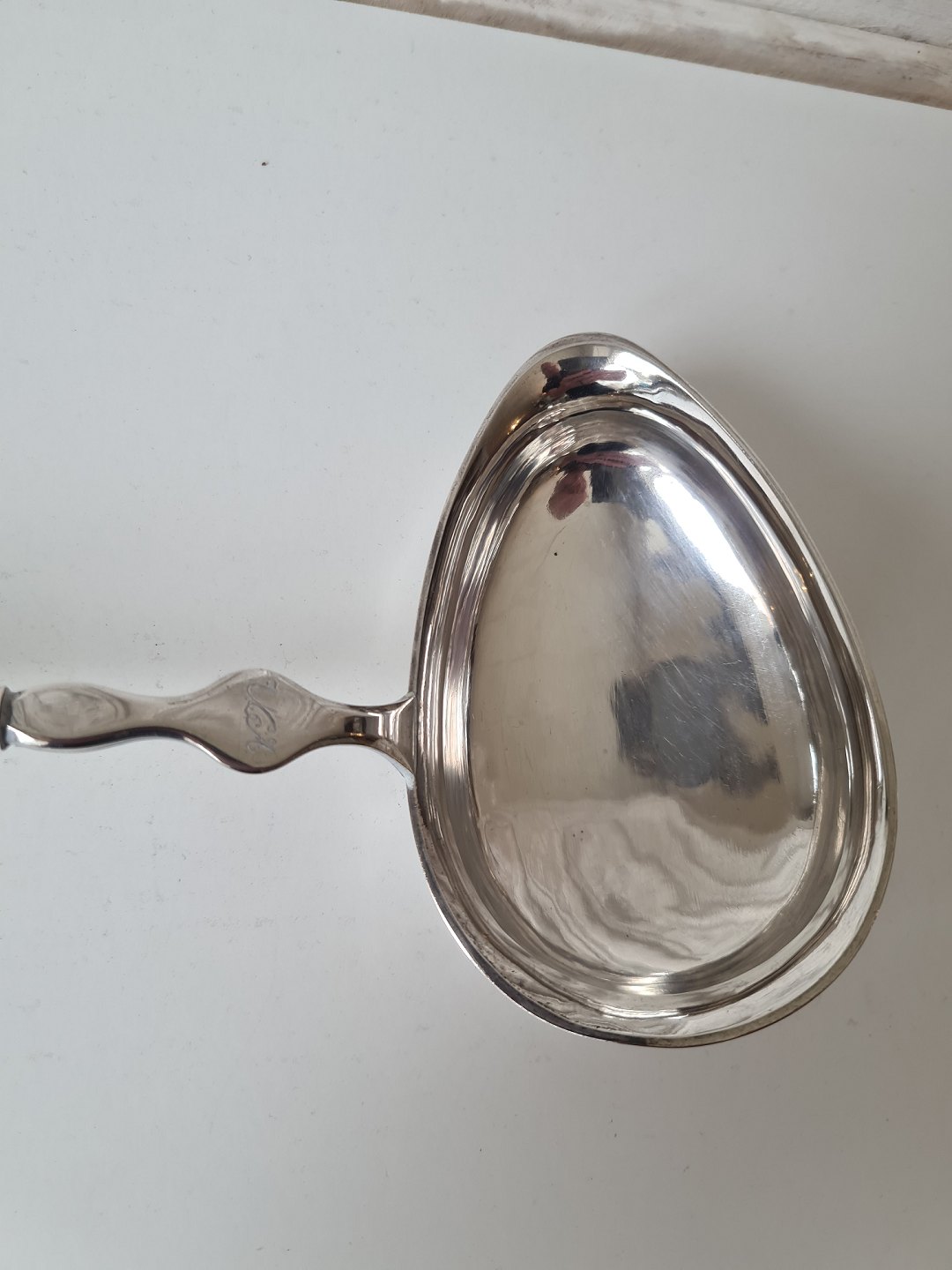 1800 tals punch ske i sølv med håndtag i drejet træ