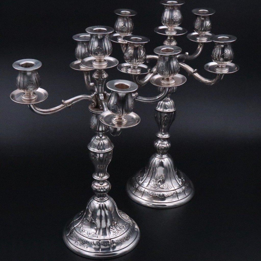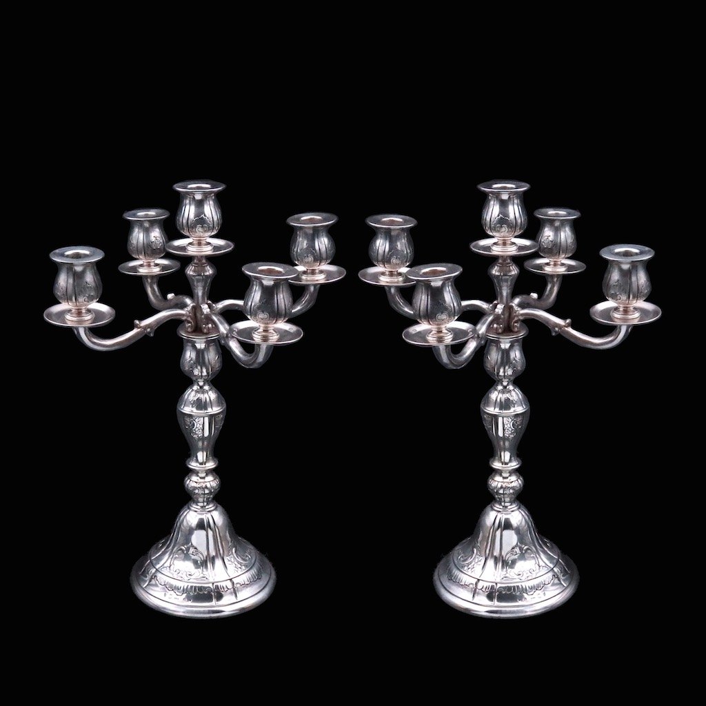 L W. Valentin. Et par fem-armet kandelabra i sølv.