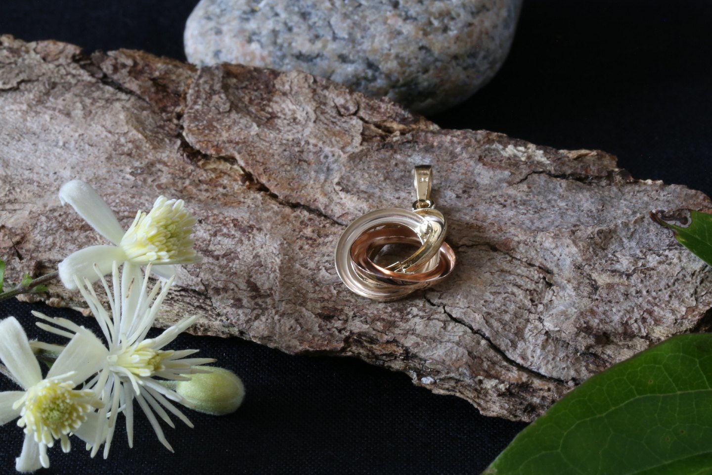 Vedhæng i 14 karat trefarvet guld, til armbånd eller halskæde.
