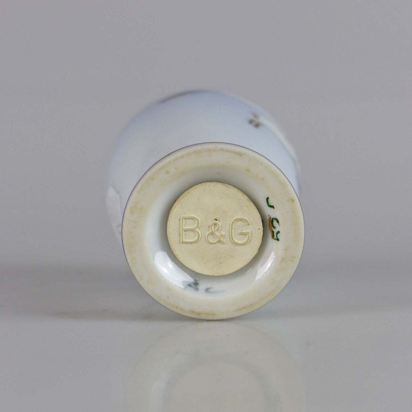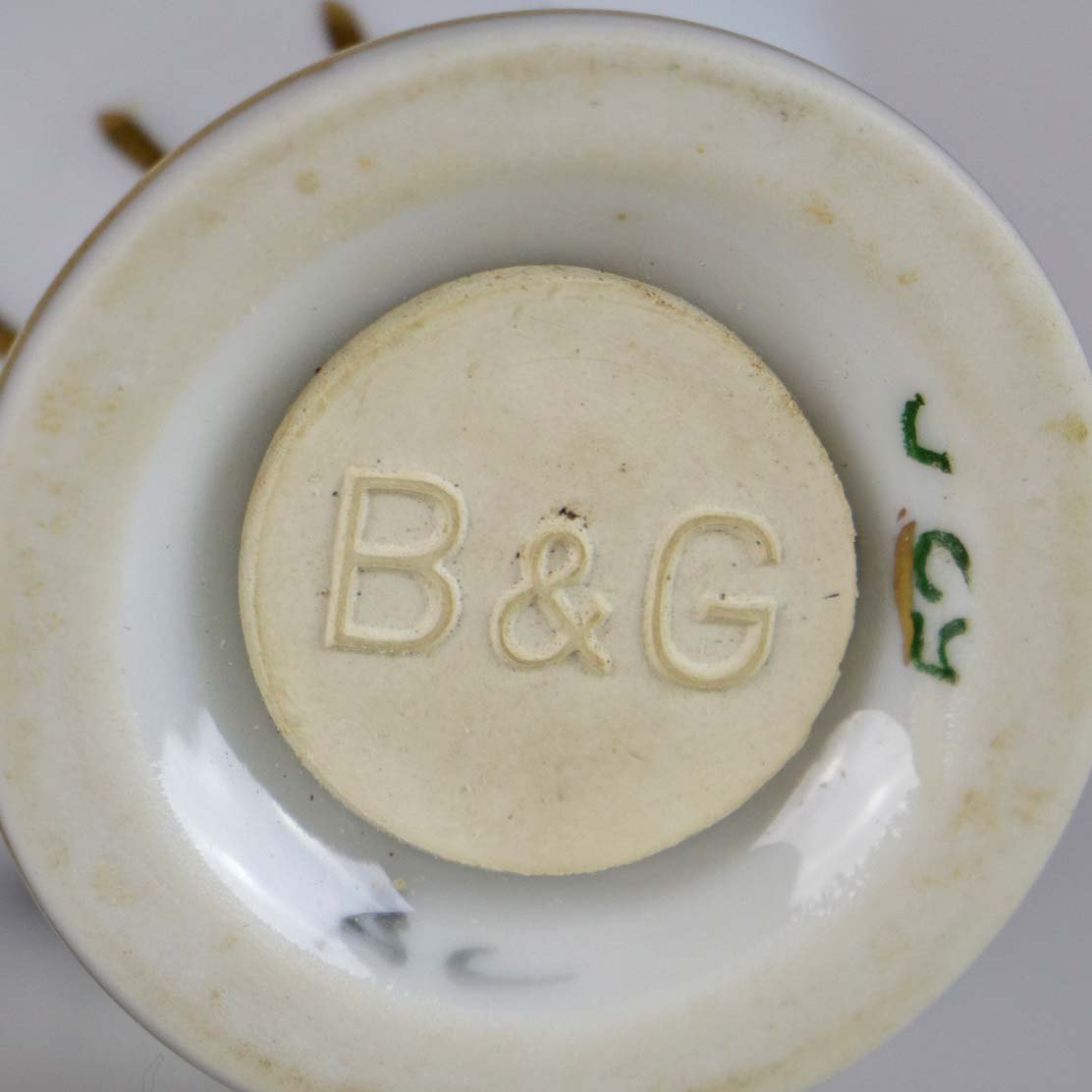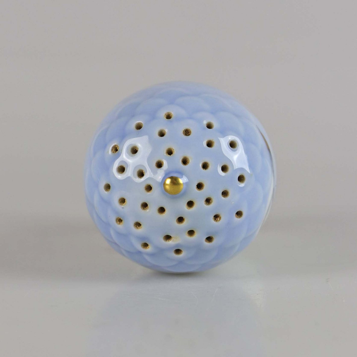 Saltstrøer af porcelæn i blålige farver med motiv af måger og guldstreger