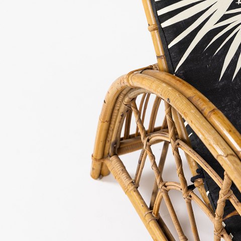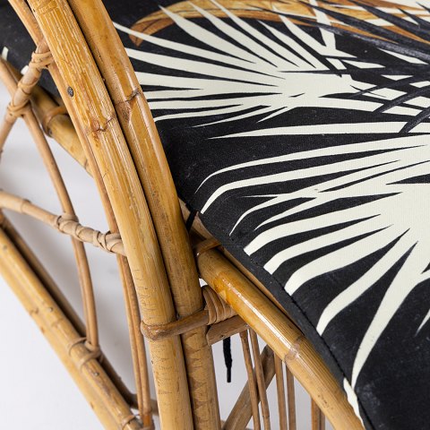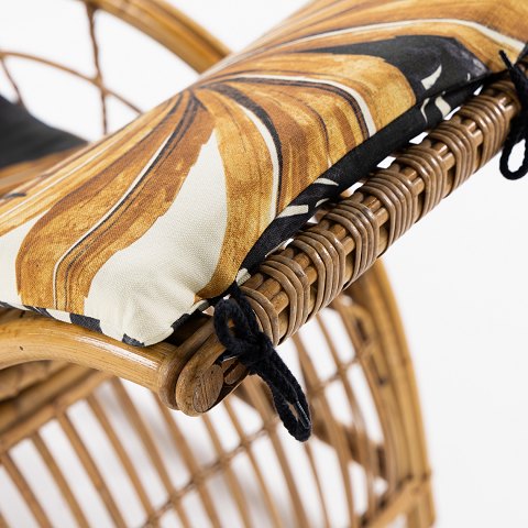 Lænestol i flettet bambus med hynde i Vainui (farve: Coco) fra Pierre Frey.