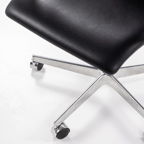 AJ 3291 - 'Oxford'-kontorstol med lav ryg, armlæn, højdejustering og sort semi-anilin-læder.