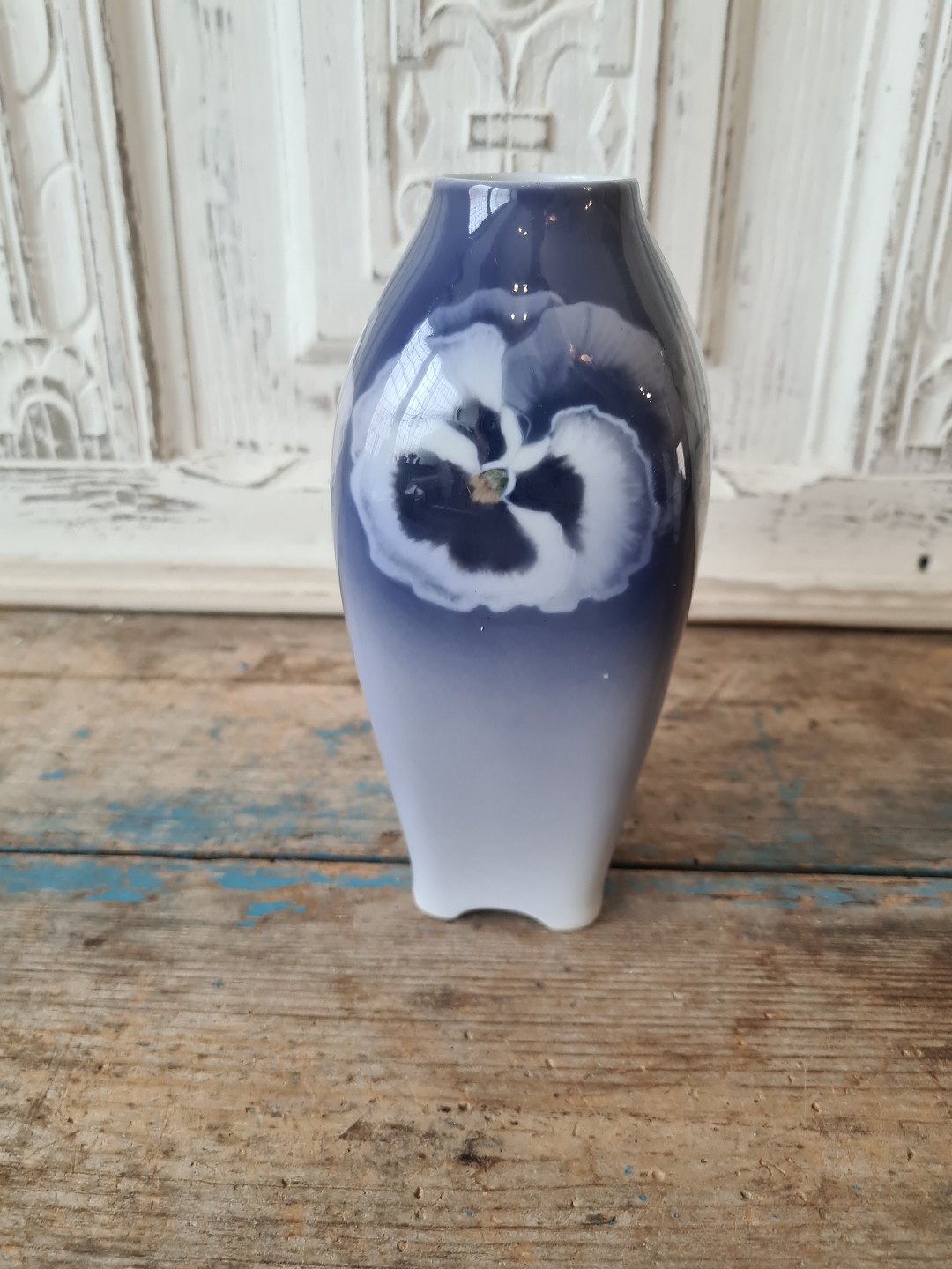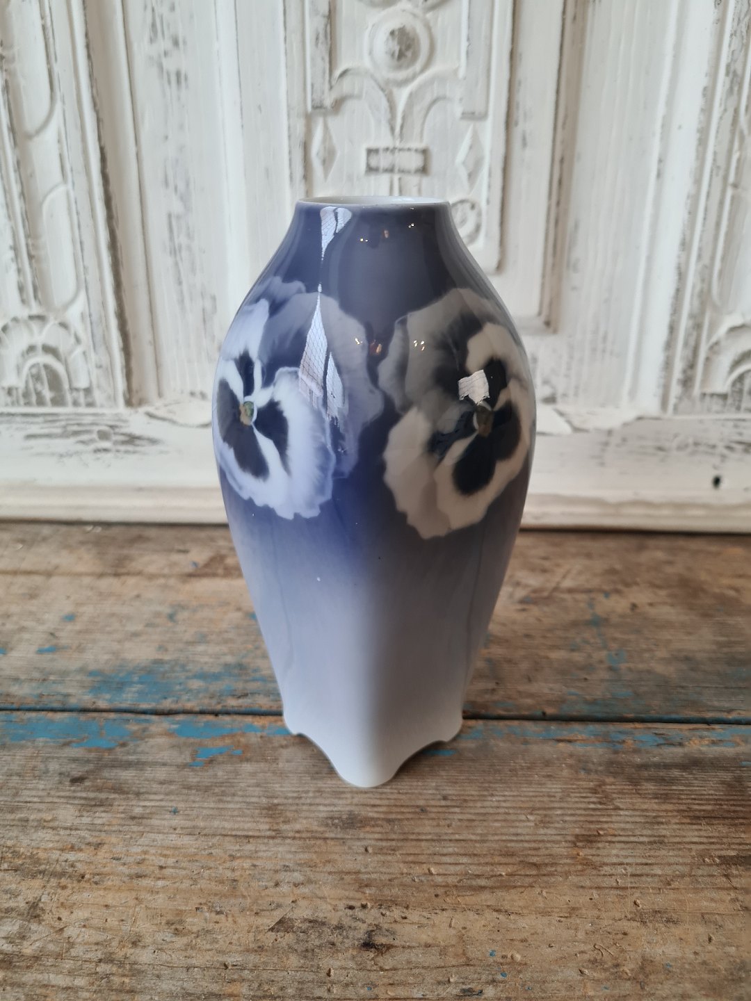 Royal Copenhagen Art Nouveau vase dekoreret med stedmoderblomster No. 900/240, 1. sortering