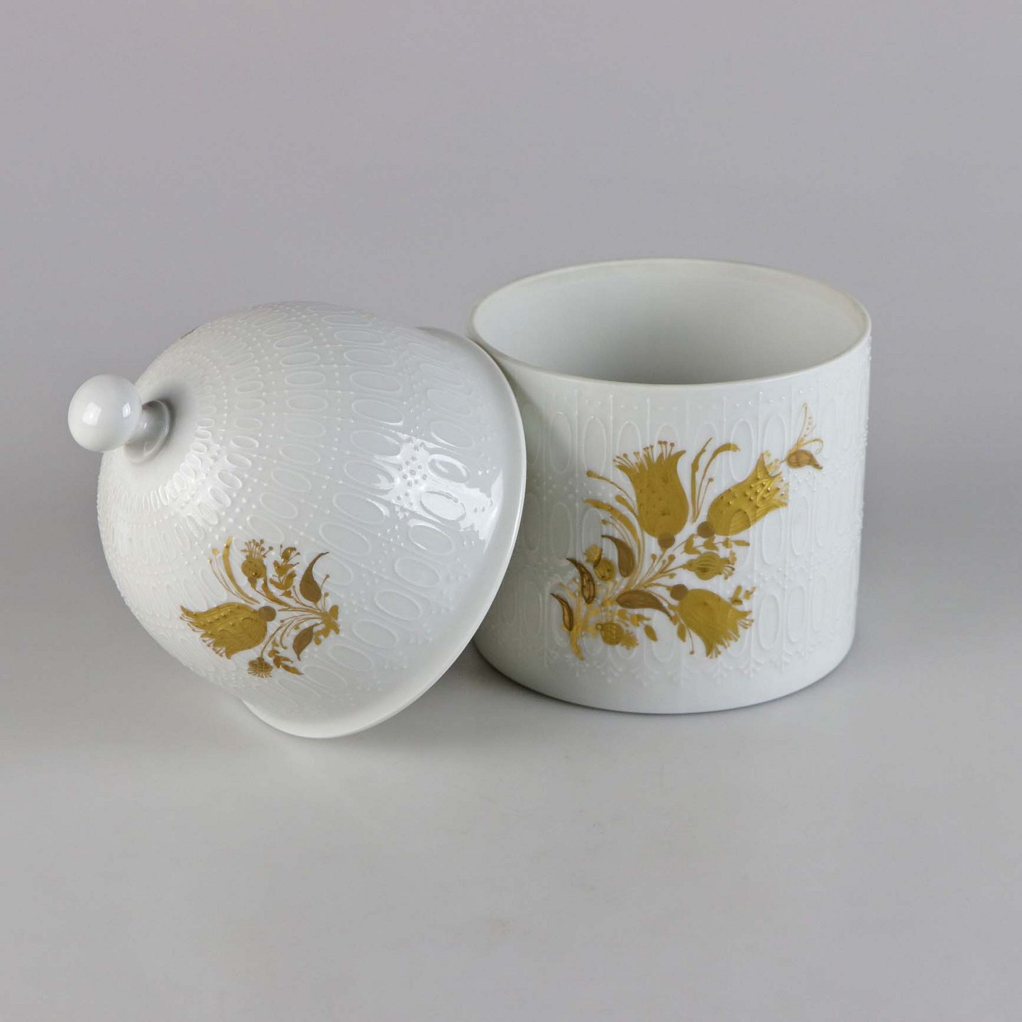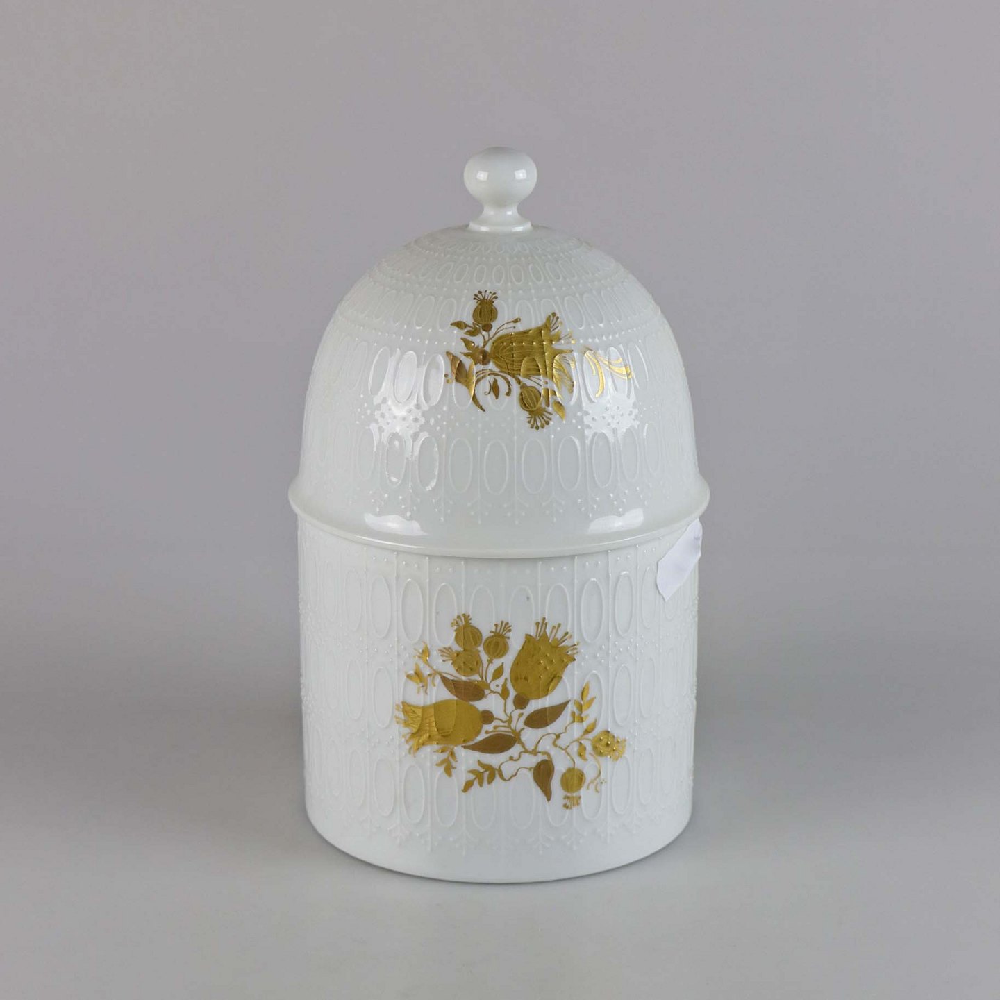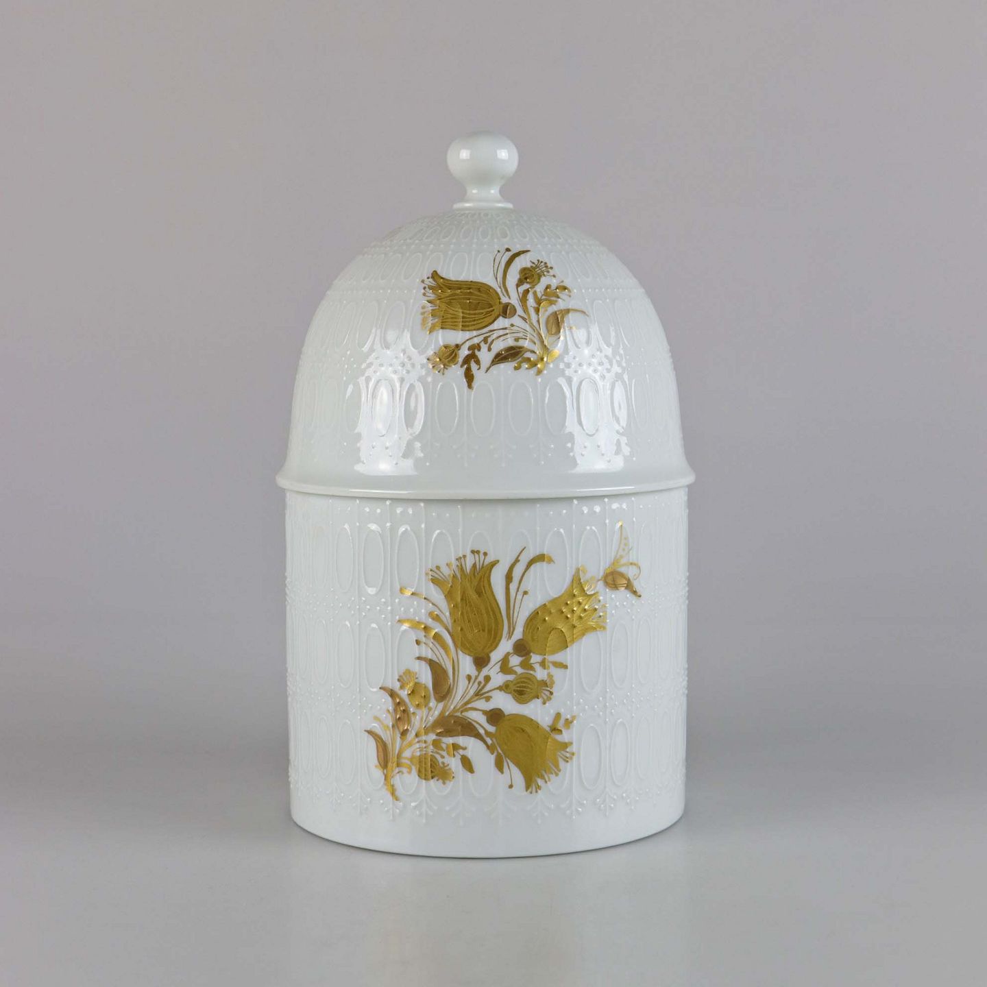 Krukke med låg fra stellet Romanze. Krukken er lavet i forbindelse med Rosenthal's 100 års jubilæum